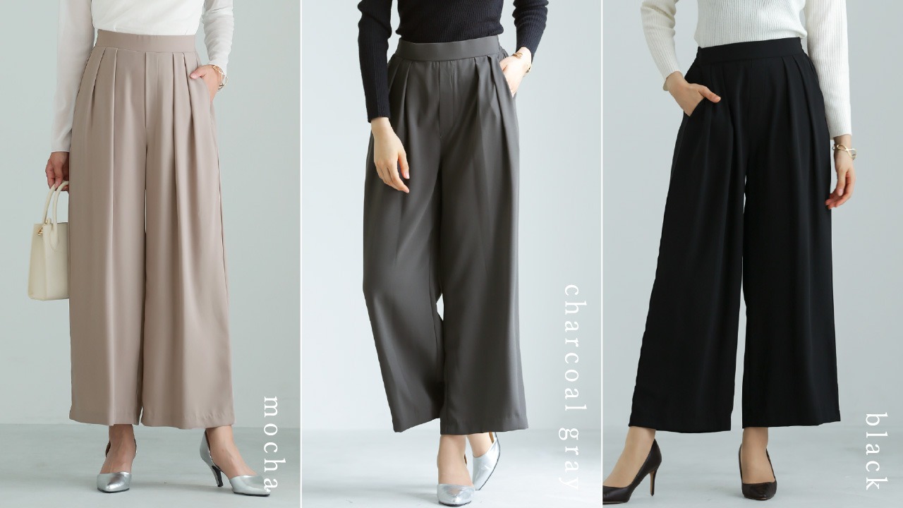 ワイドシルエットの2タックパンツは、しなやかな落ち感で美しいラインを演出します。