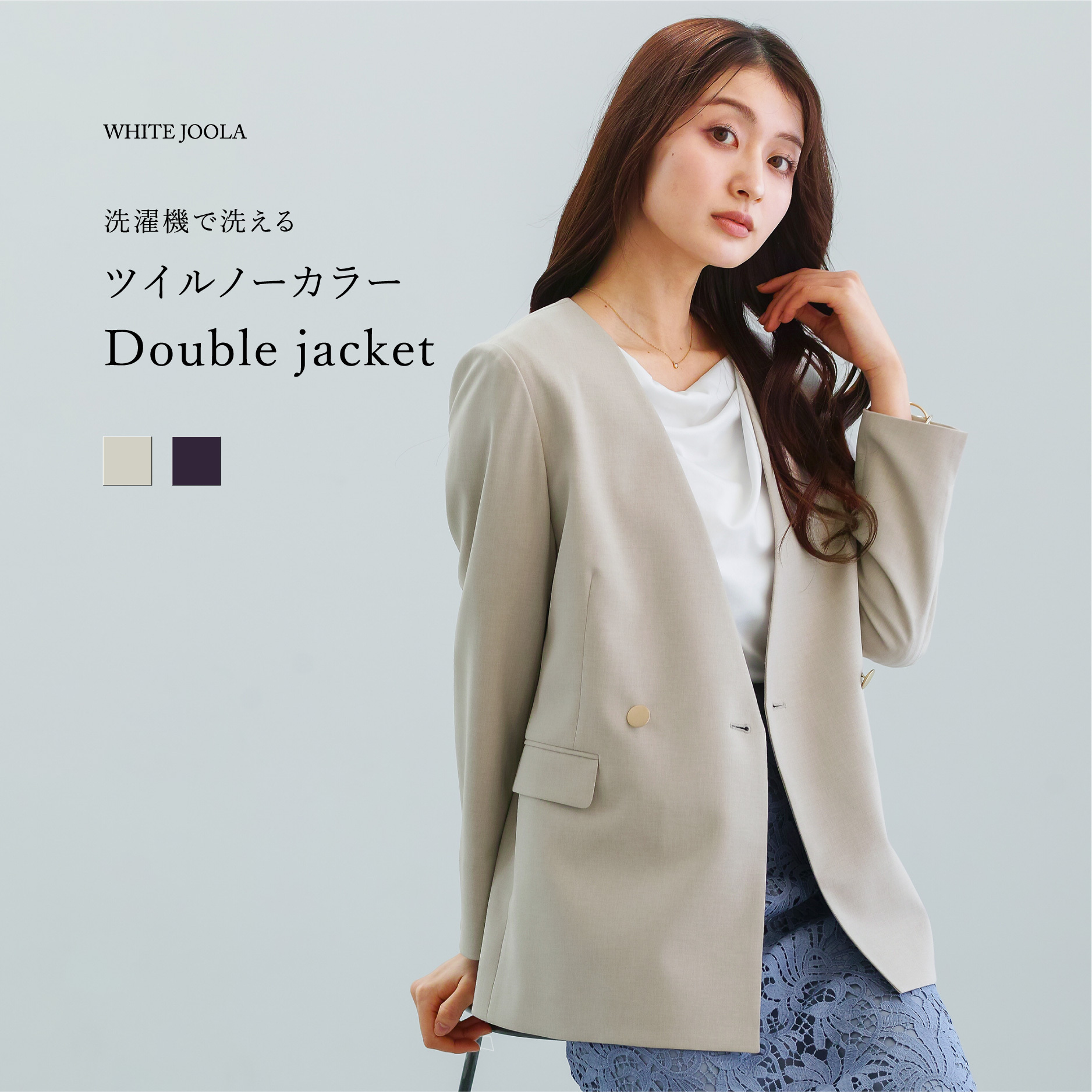 【 洗える 】 ツイルノーカラーダブルジャケット