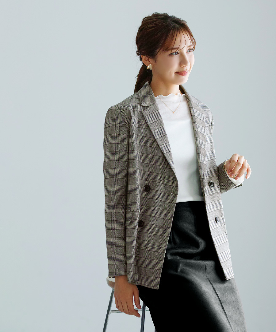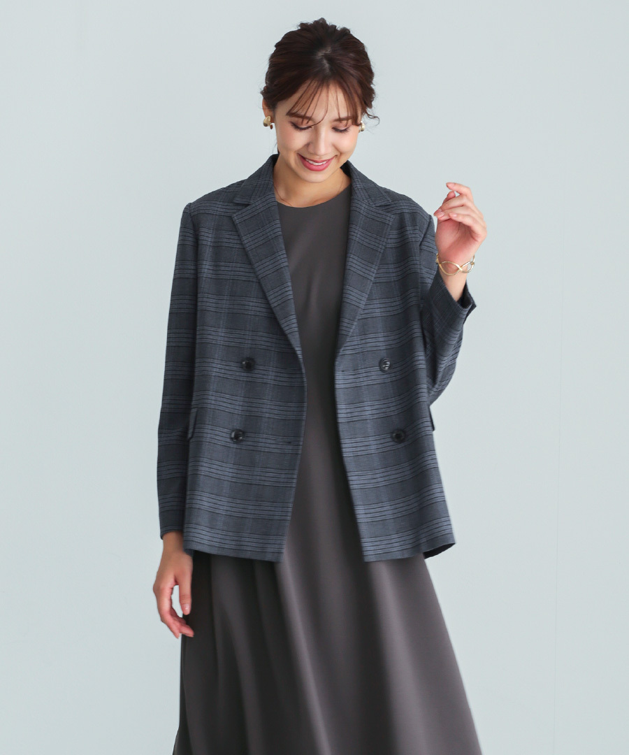 【 洗える 】 トラッドチェック・テーラードダブルジャケット
