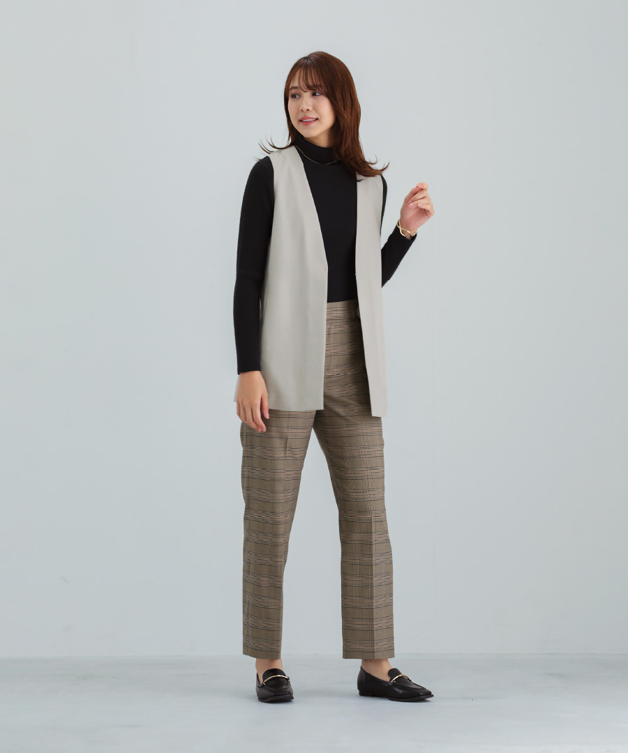 手洗い可 ウォッシャブル ストレートパンツ レディース 通勤対応 オフィス カジュアル チェック柄 トラディショナル
