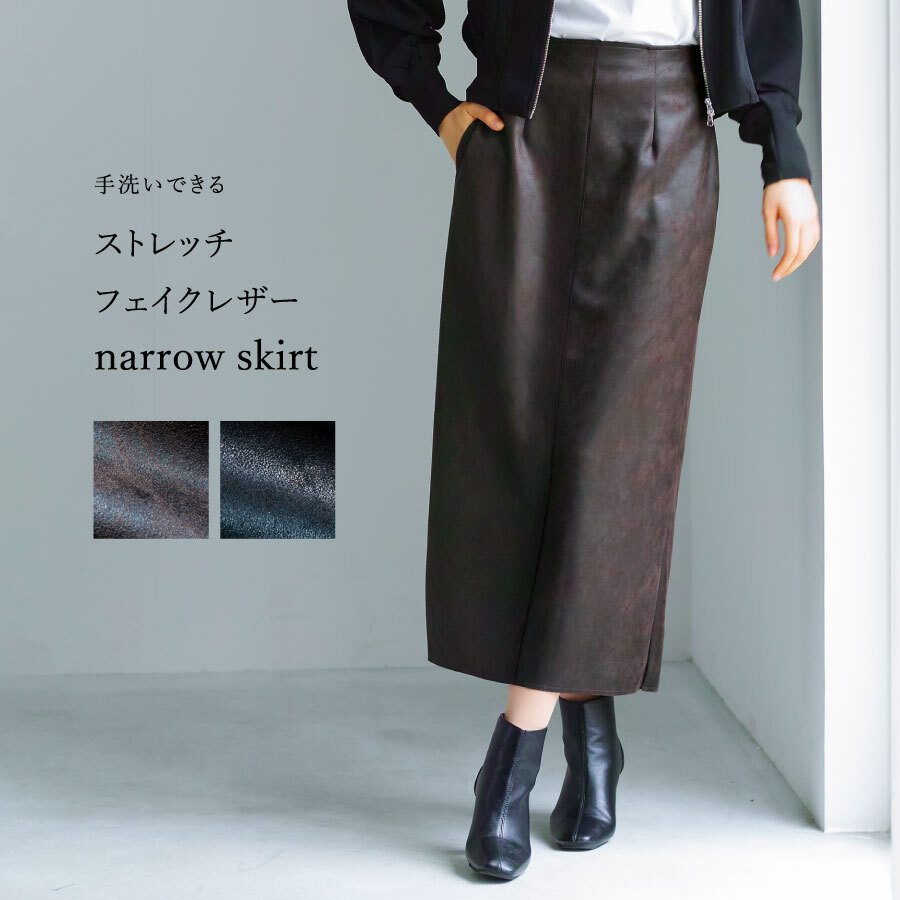 【 手洗いできる 】 ストレッチフェイクレザー・ナロースカート