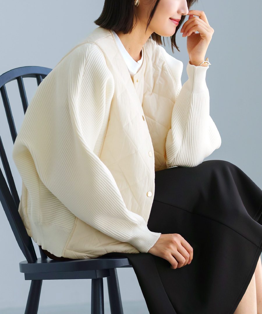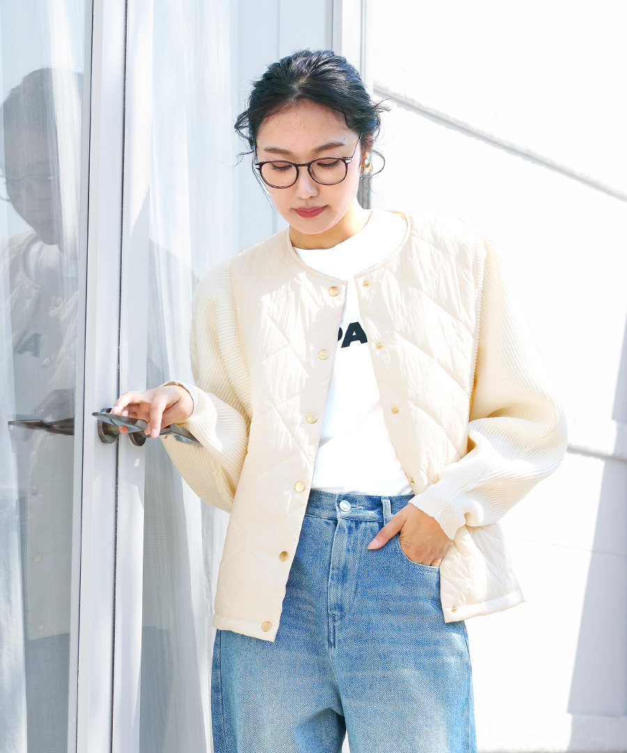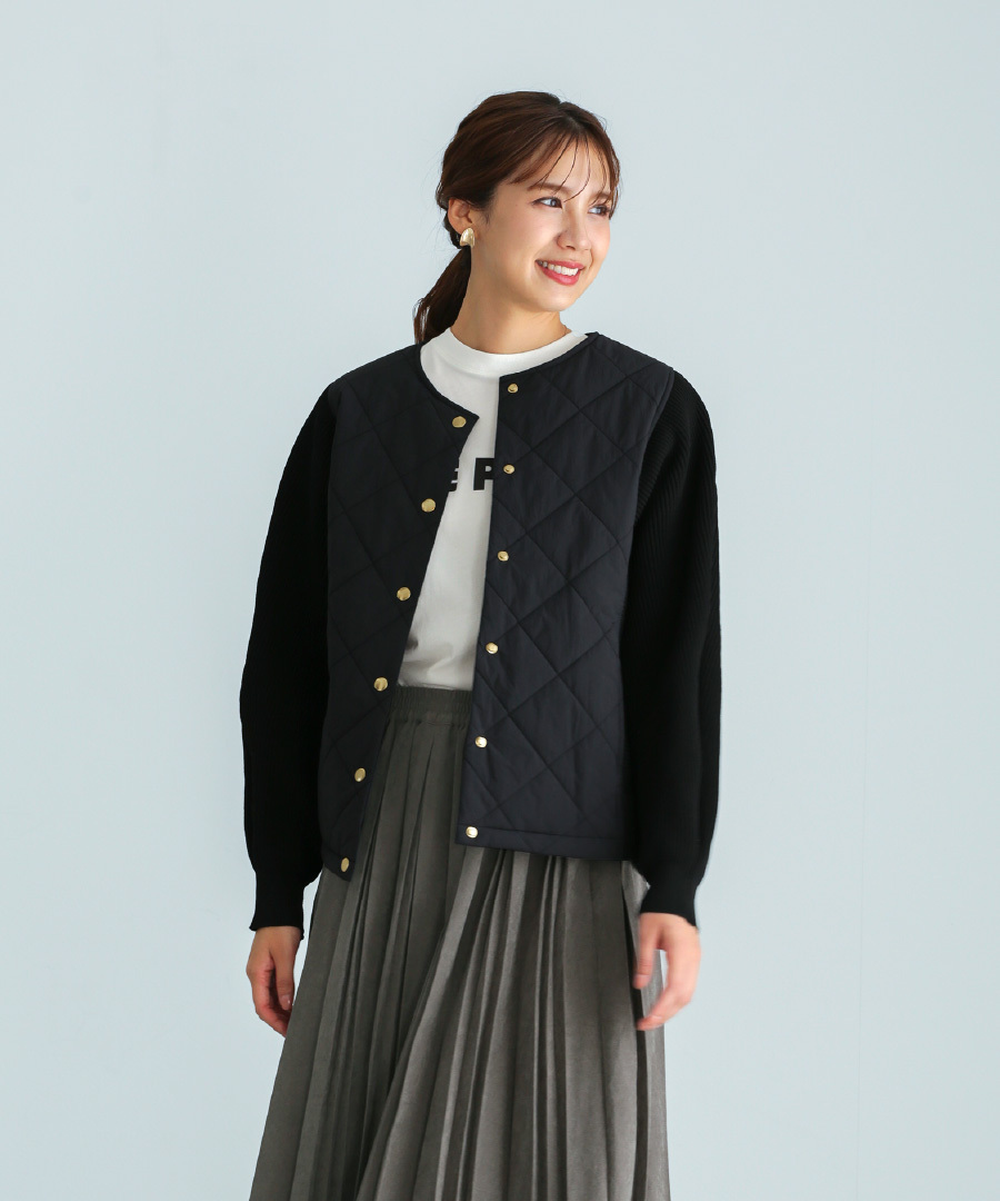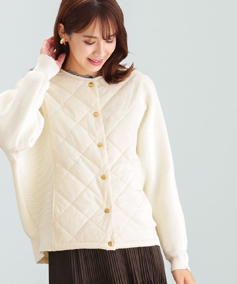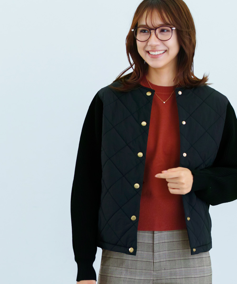 【 暖か&軽やか 】 ダイヤキルト×リブニットブルゾン
