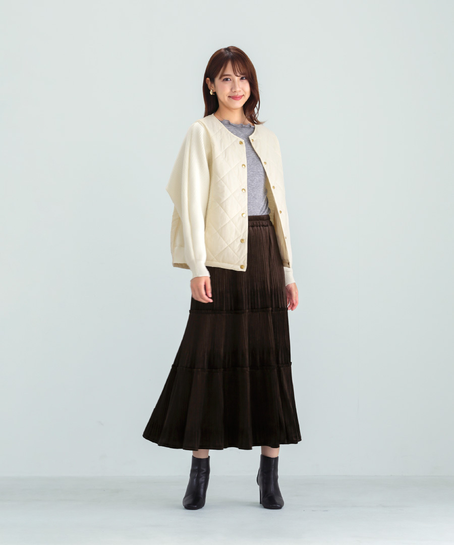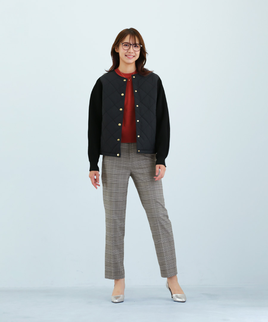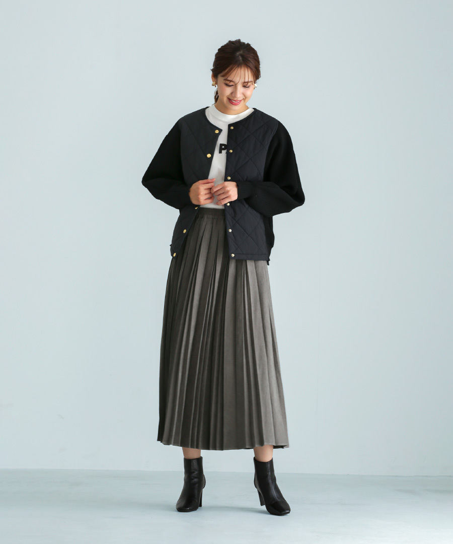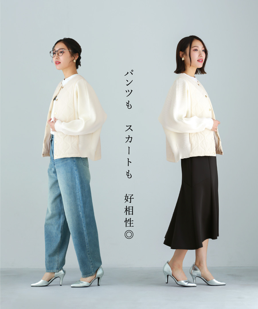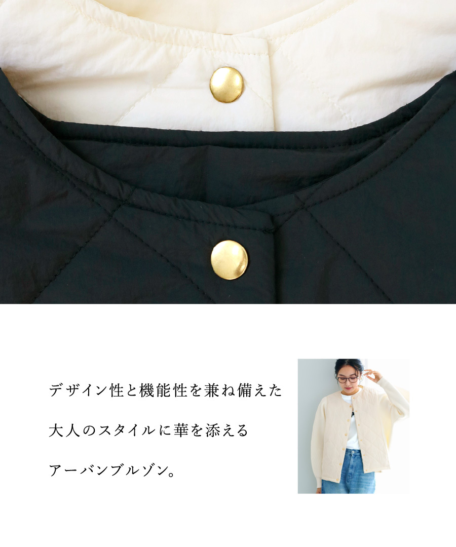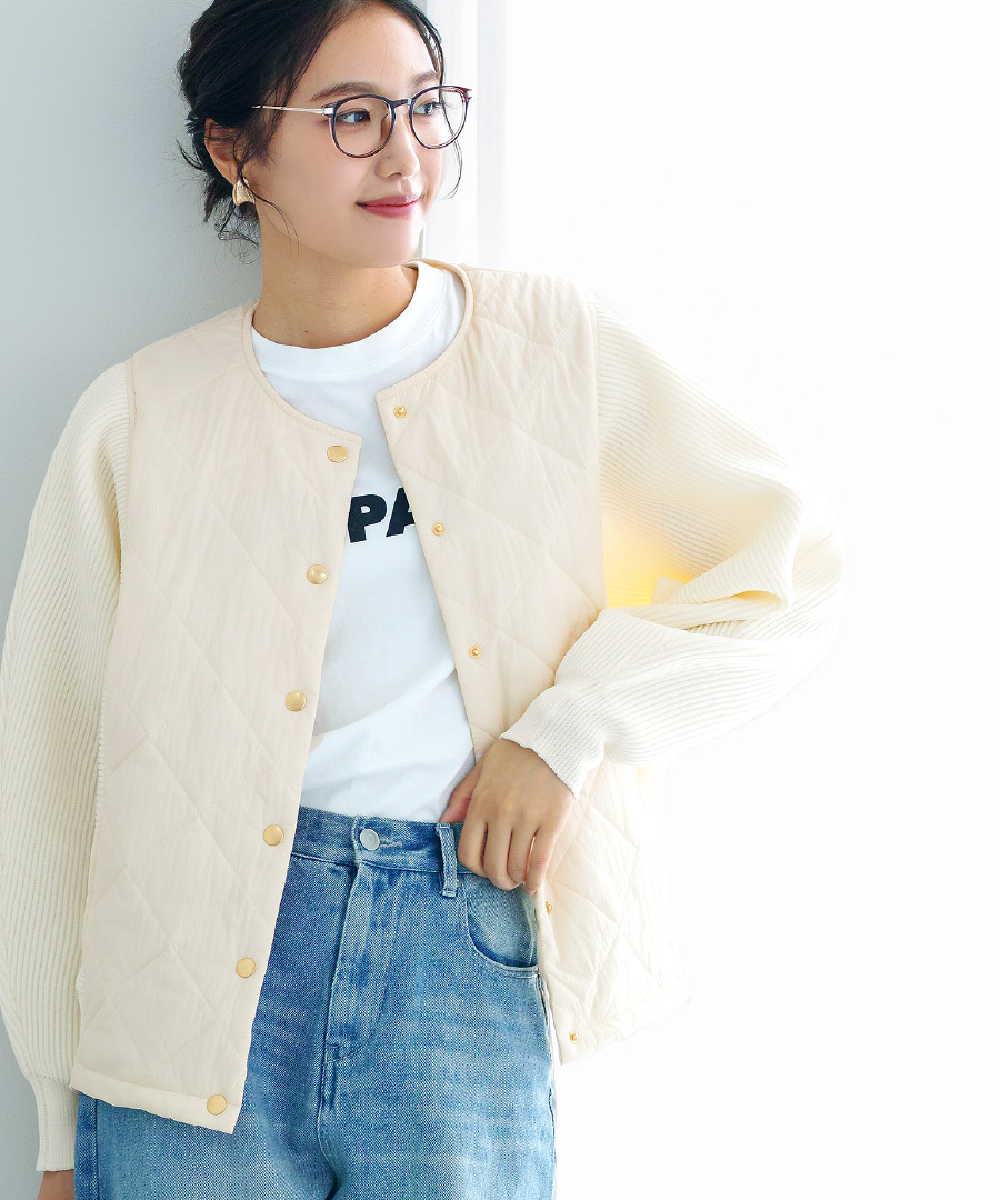 【 暖か&軽やか 】 ダイヤキルト×リブニットブルゾン