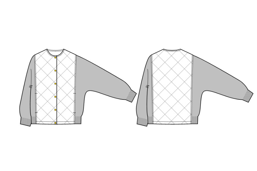 中綿入りのタフタダイヤキルト生地を組み合わせた