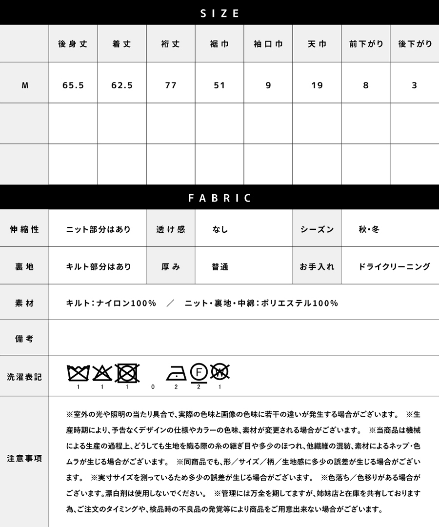 【 暖か&軽やか 】 ダイヤキルト×リブニットブルゾン(775524)