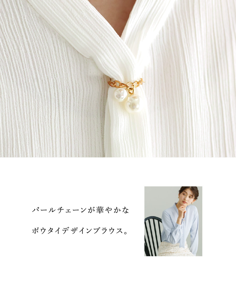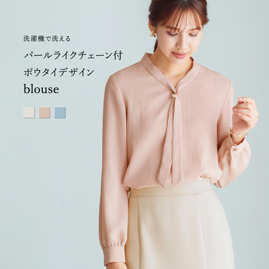【 洗える 】 パールライクチェーン付・ボウタイデザインブラウス