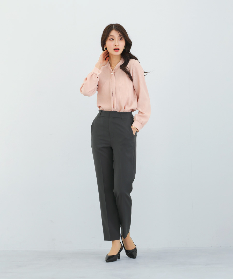 上品なボウタイデザインのブラウスです。