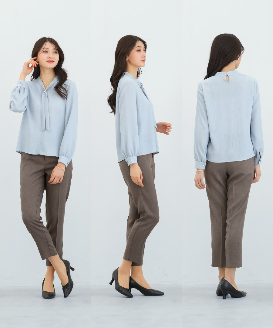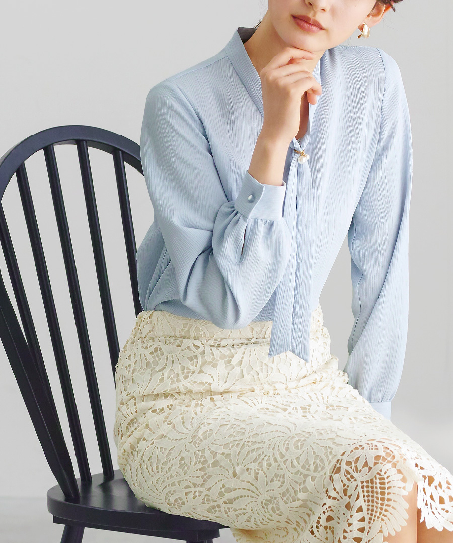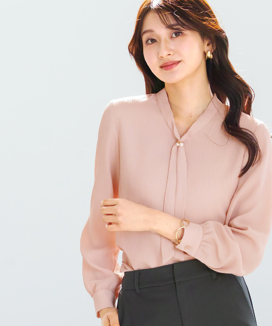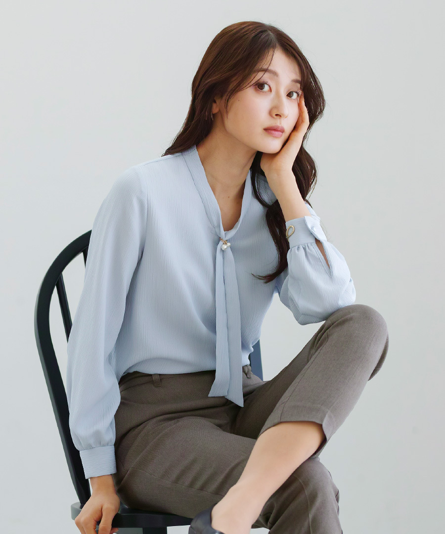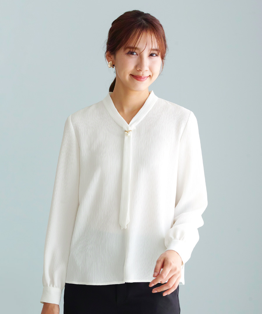 「 アクセサリーいらずで華やぐ ボウタイブラウス 」