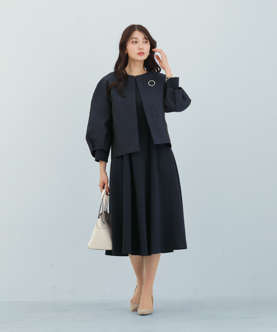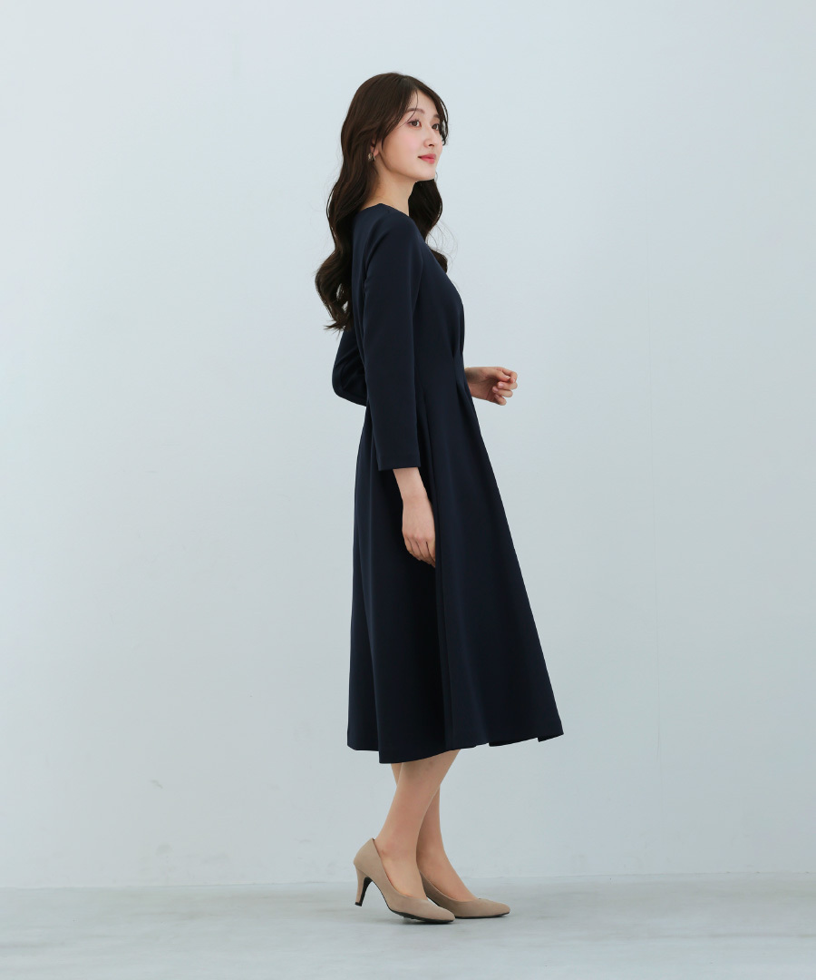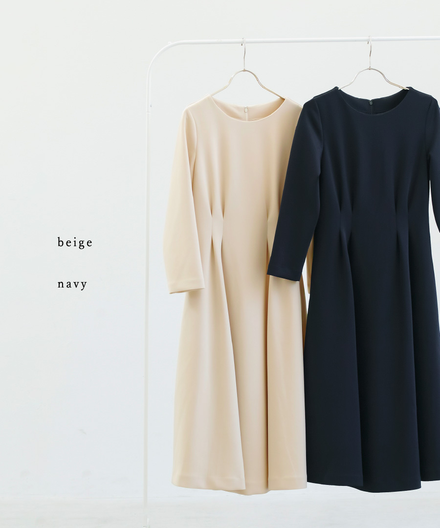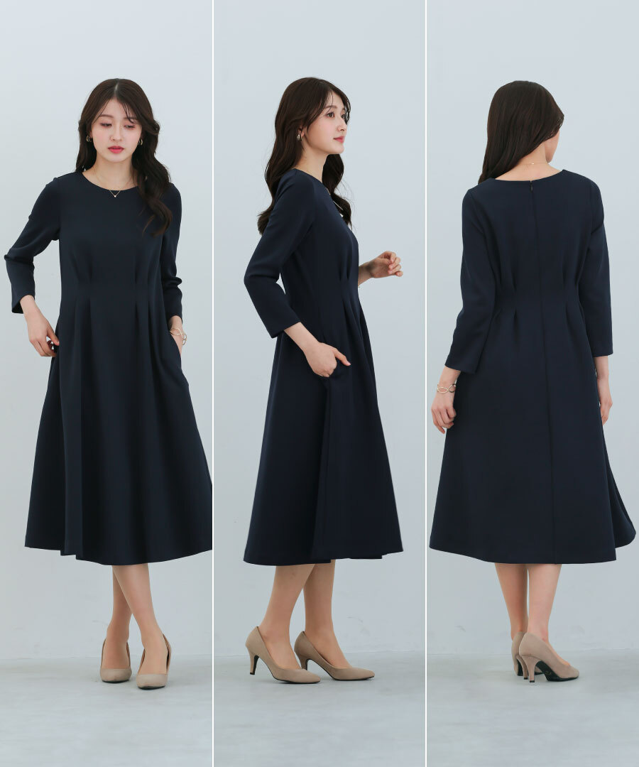 【 洗える・ストレッチ 】 スムースダンボール・タックフレアワンピース