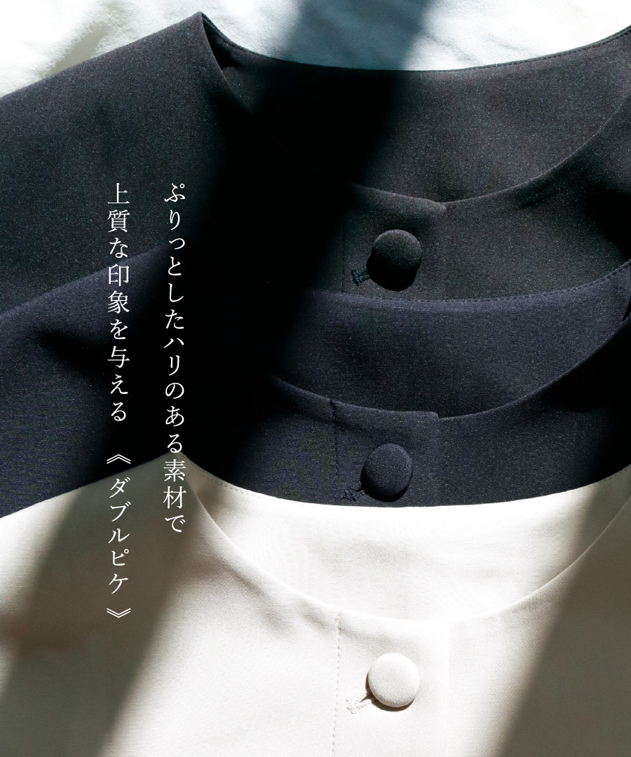 一番上だけが見える比翼仕立てで、すっきりとした印象に。