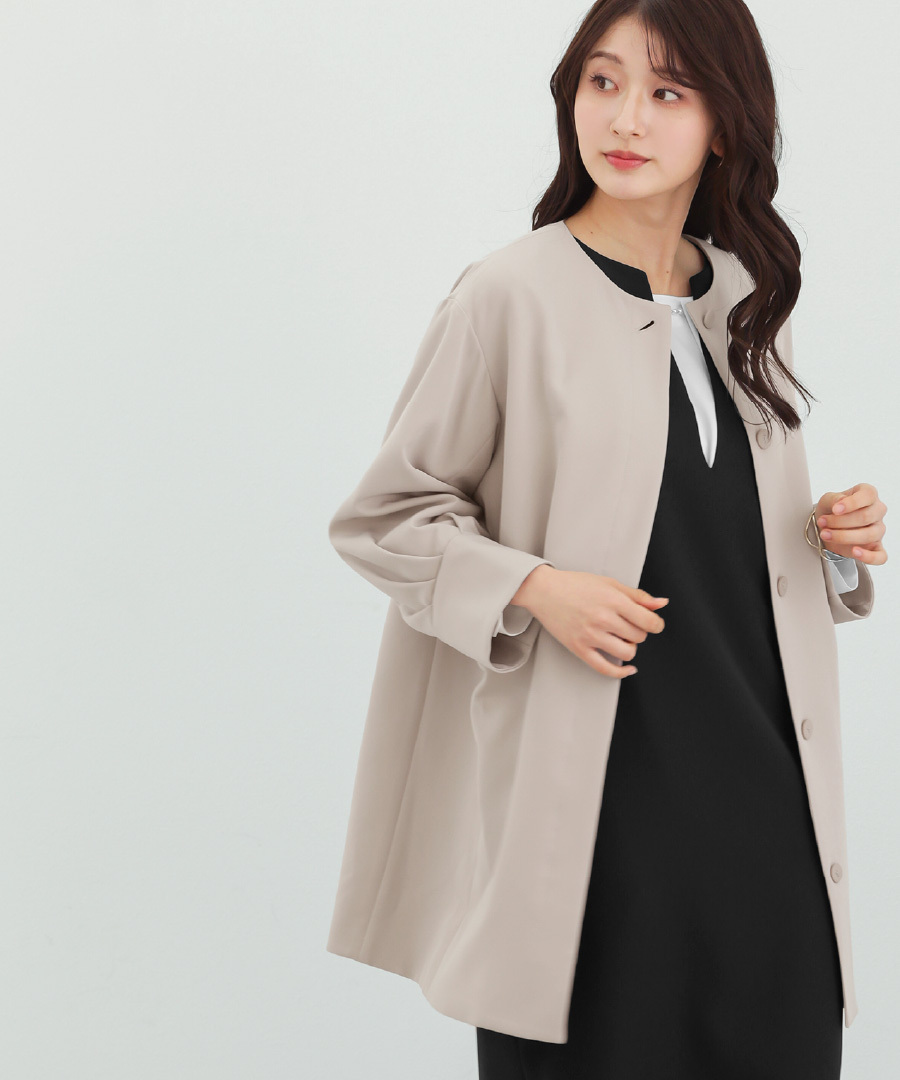 多機能すぎるコート【UVカット・速乾・防シワ・ストレッチ・洗える】ダブルピケクロス・ボリューム袖コクーンシルエットライトコート (776001)