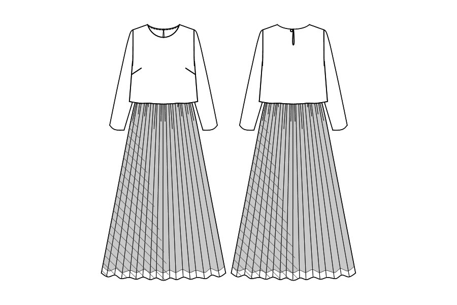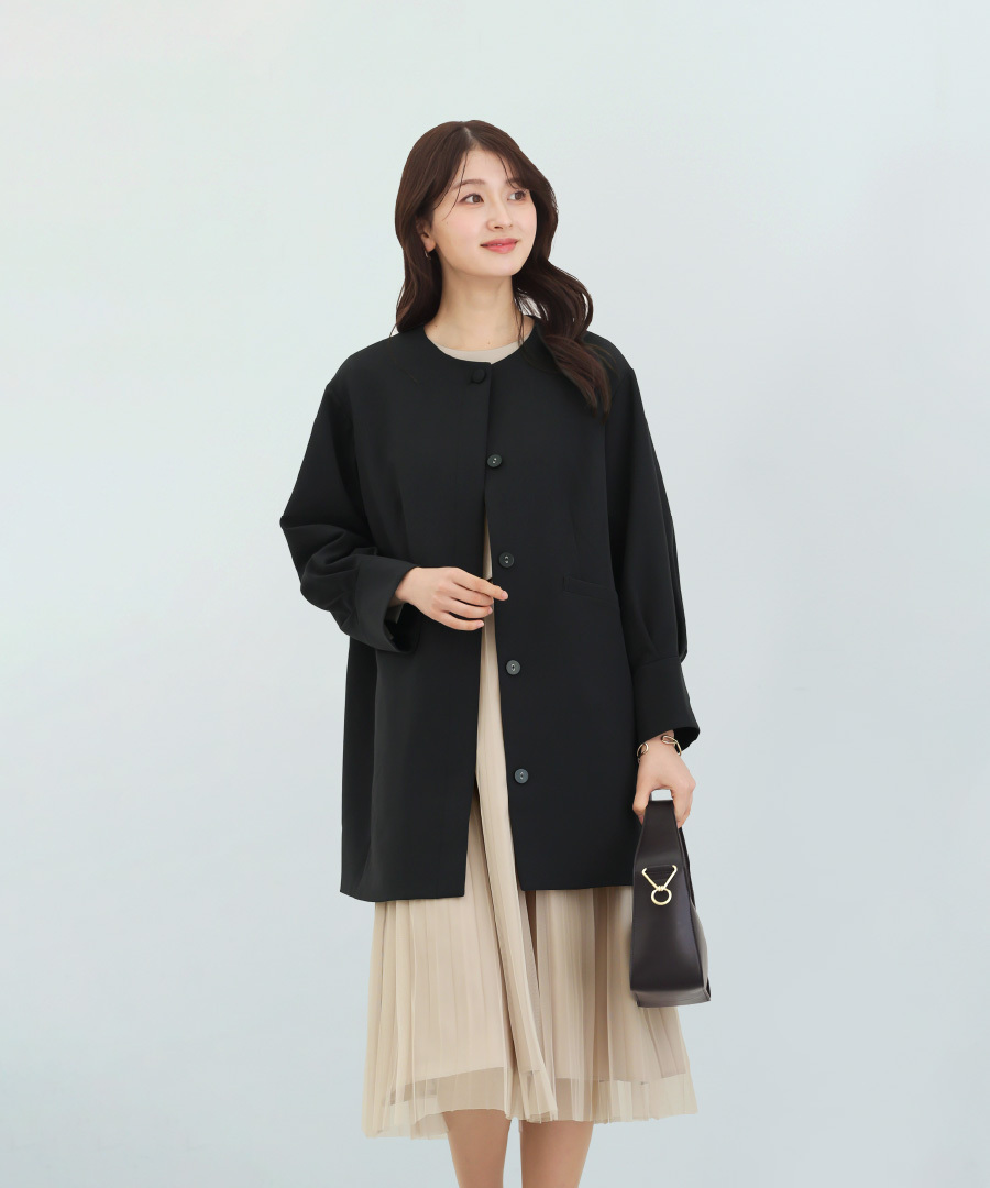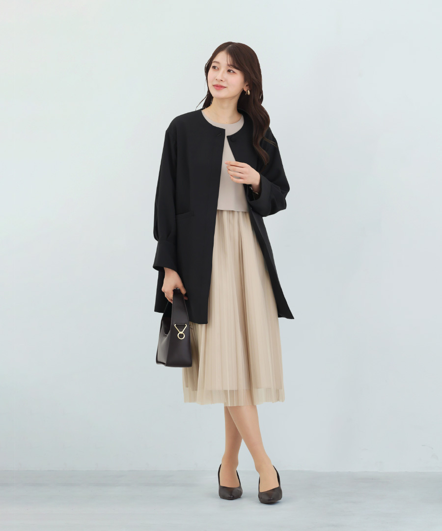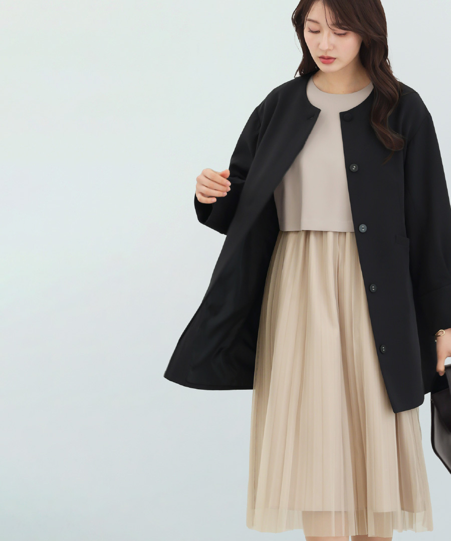 多機能すぎるワンピース【UVカット・速乾・防シワ・ストレッチ・洗える】ダブルピケクロス・チュールプリーツレイヤードワンピース(776003)