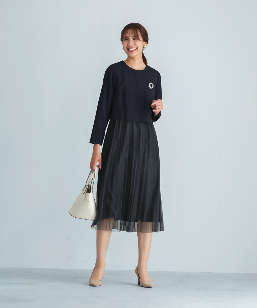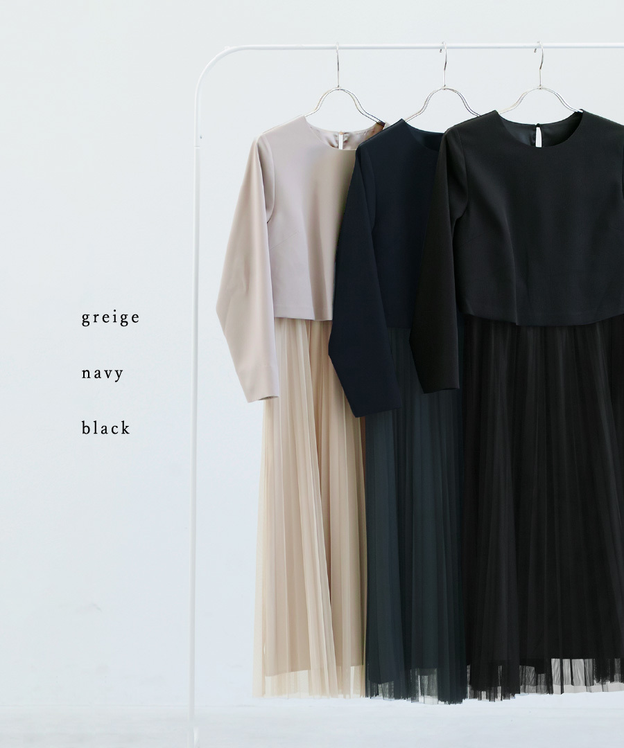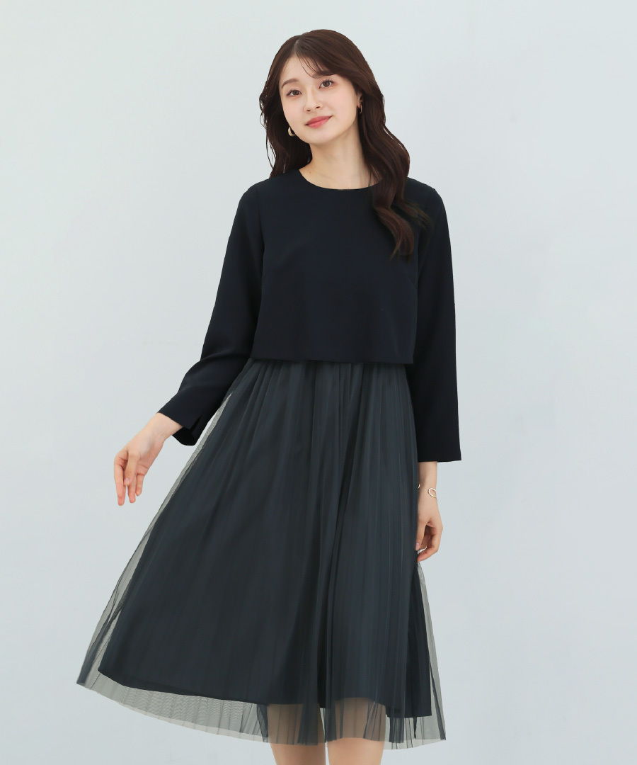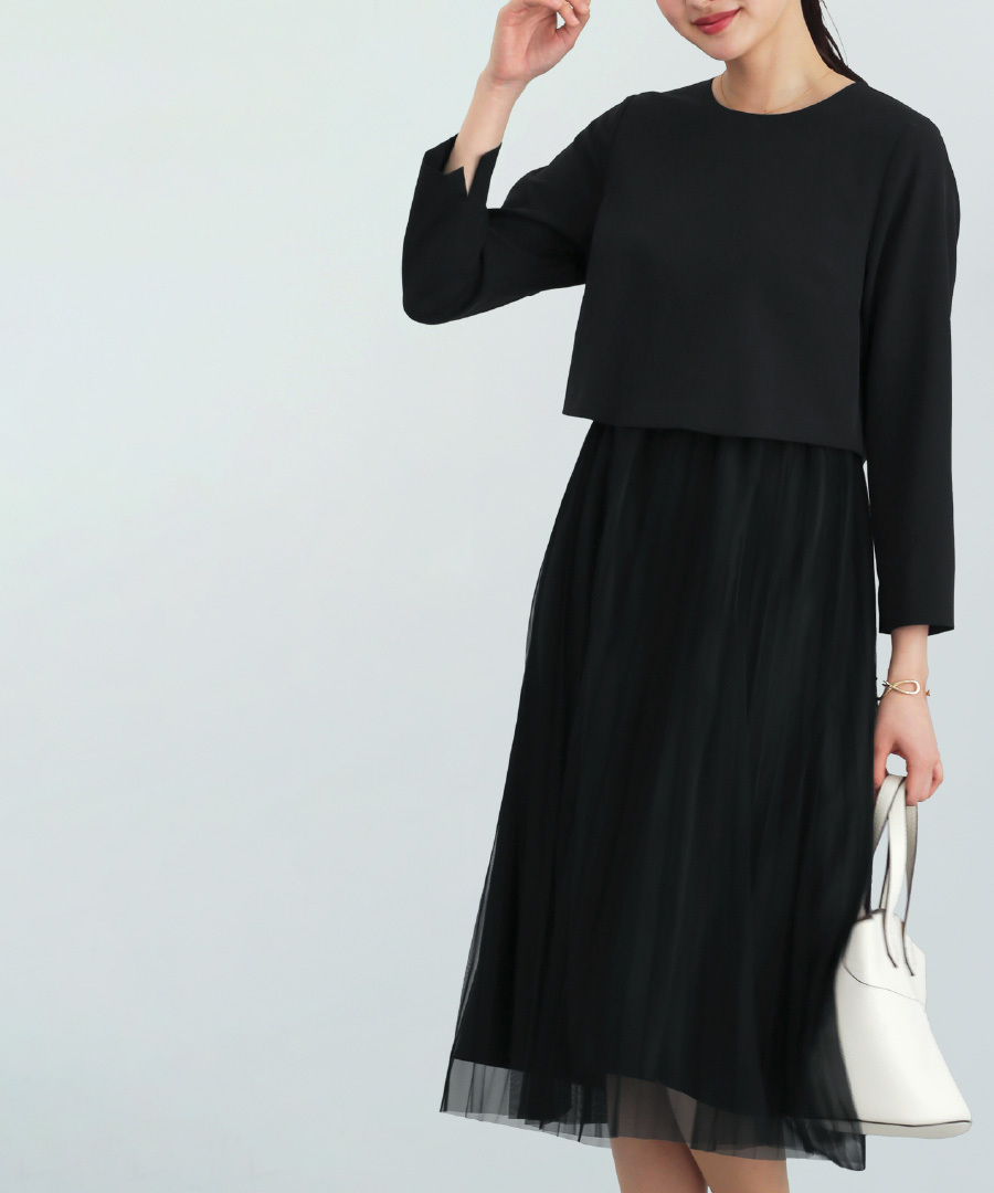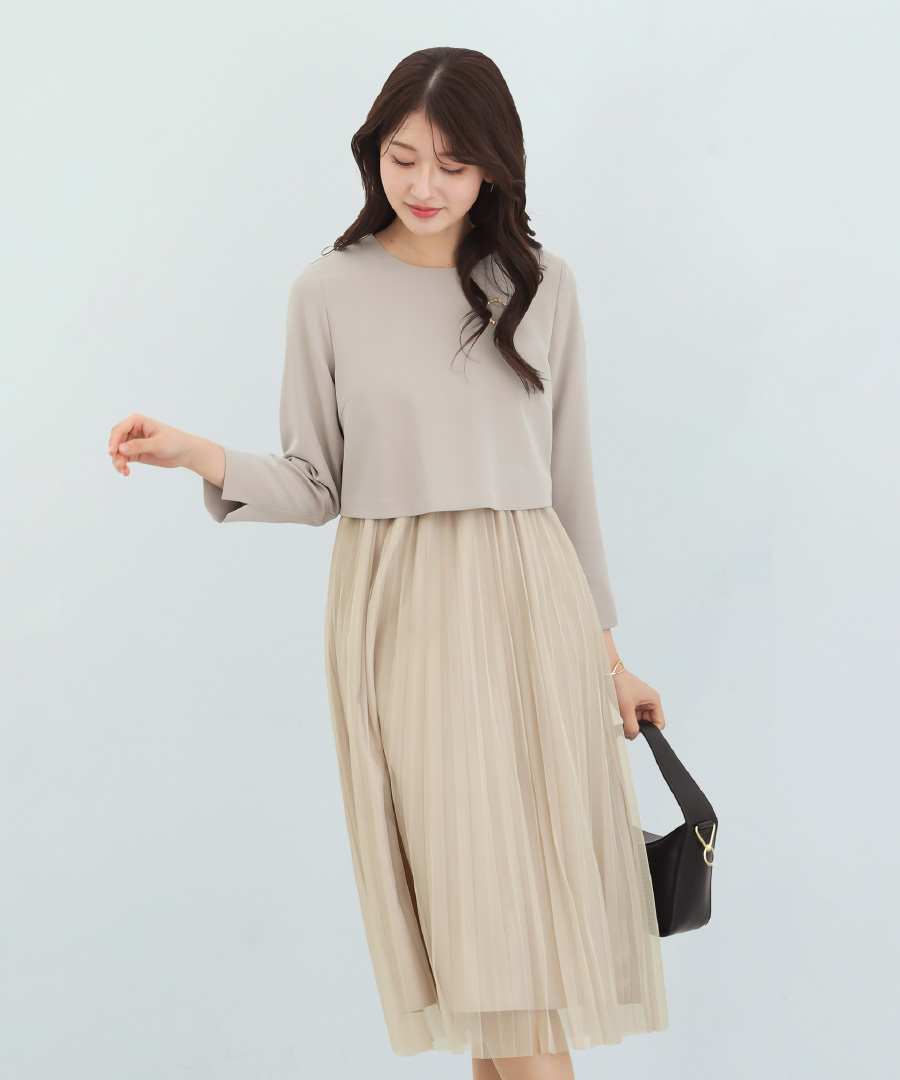 ダブルピケクロス・チュールプリーツレイヤードワンピース