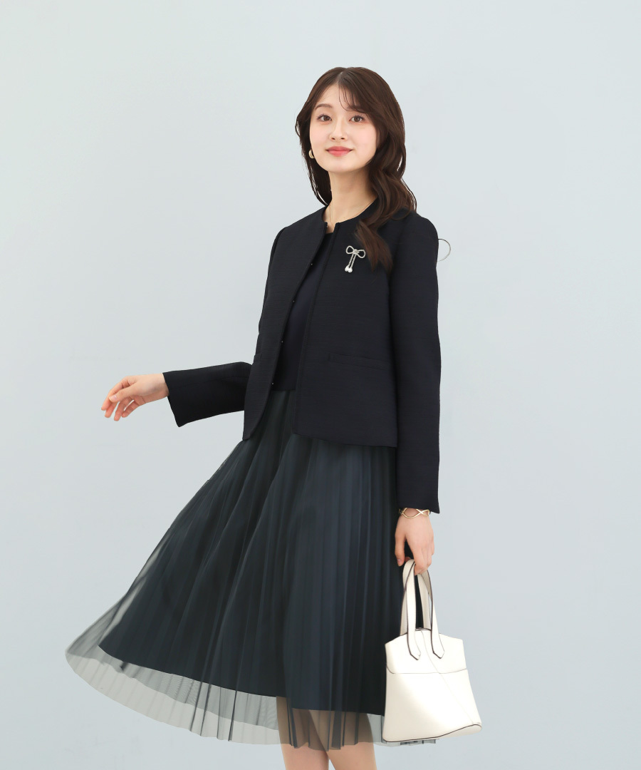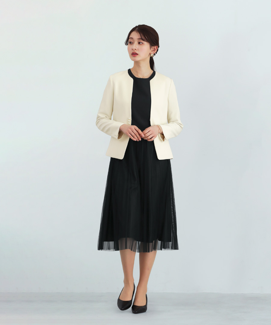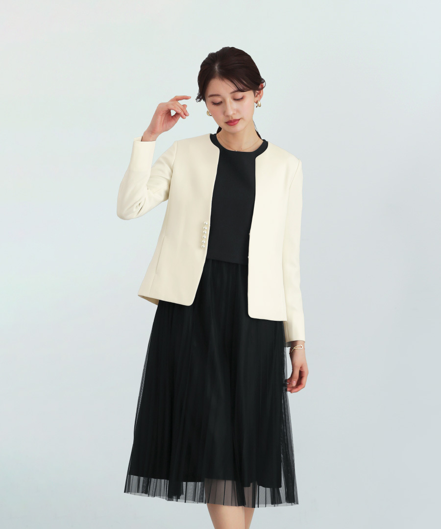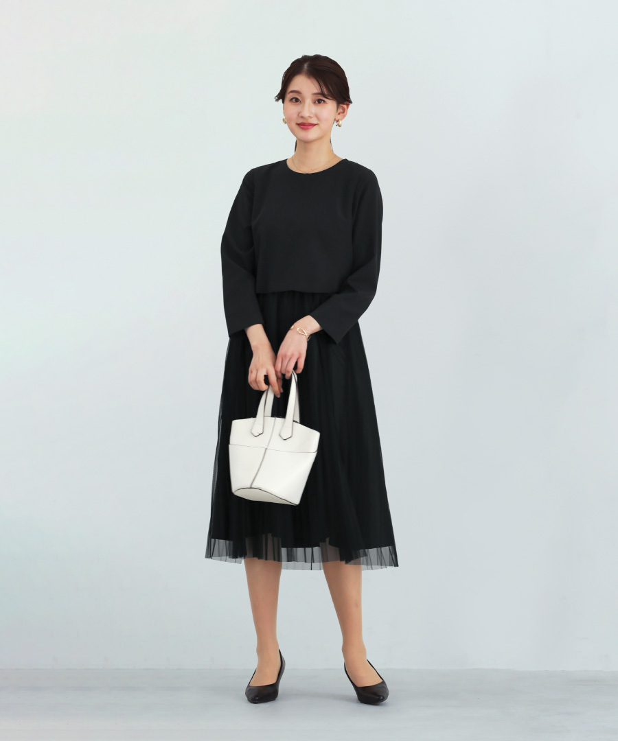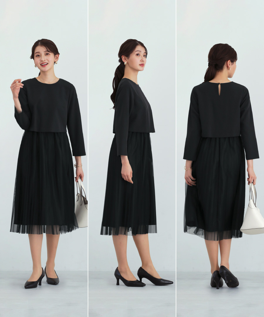 ダブルピケクロス・チュールプリーツレイヤードワンピース