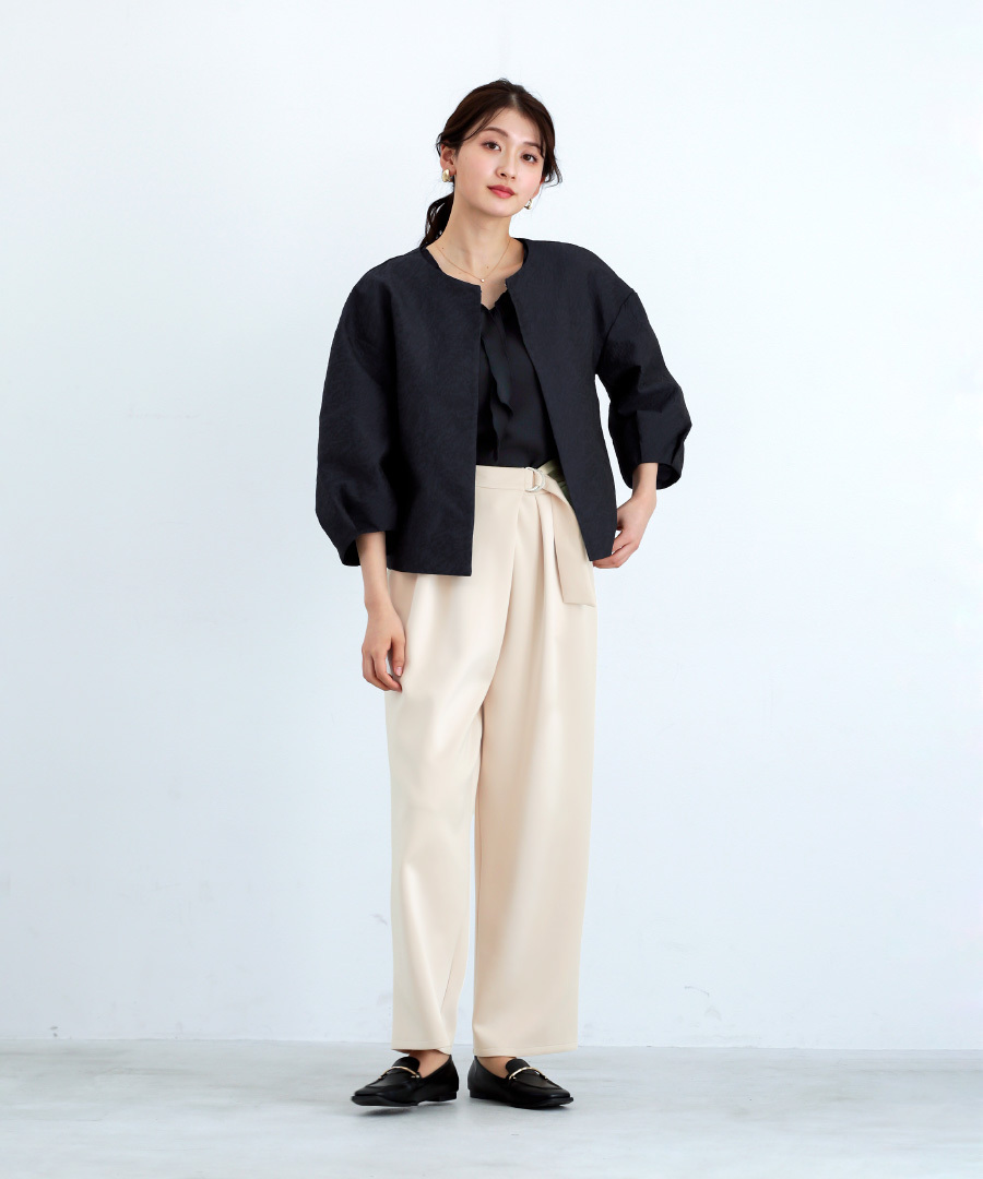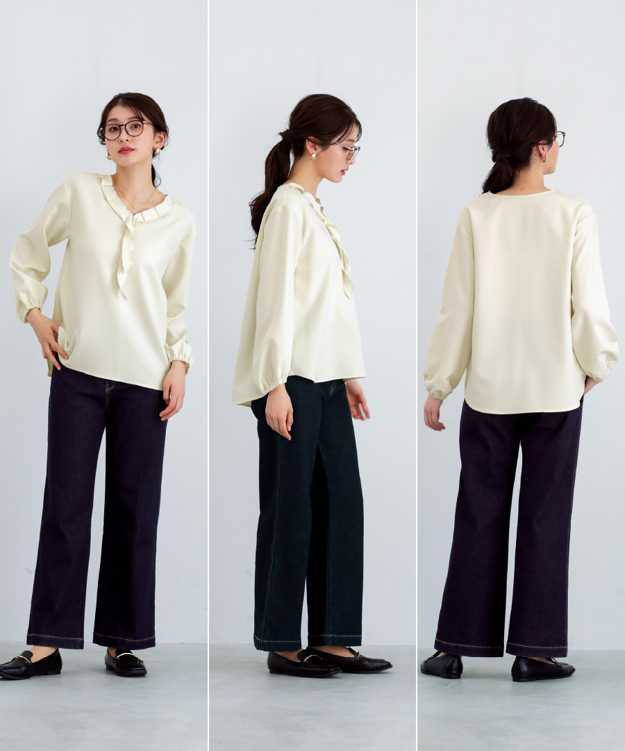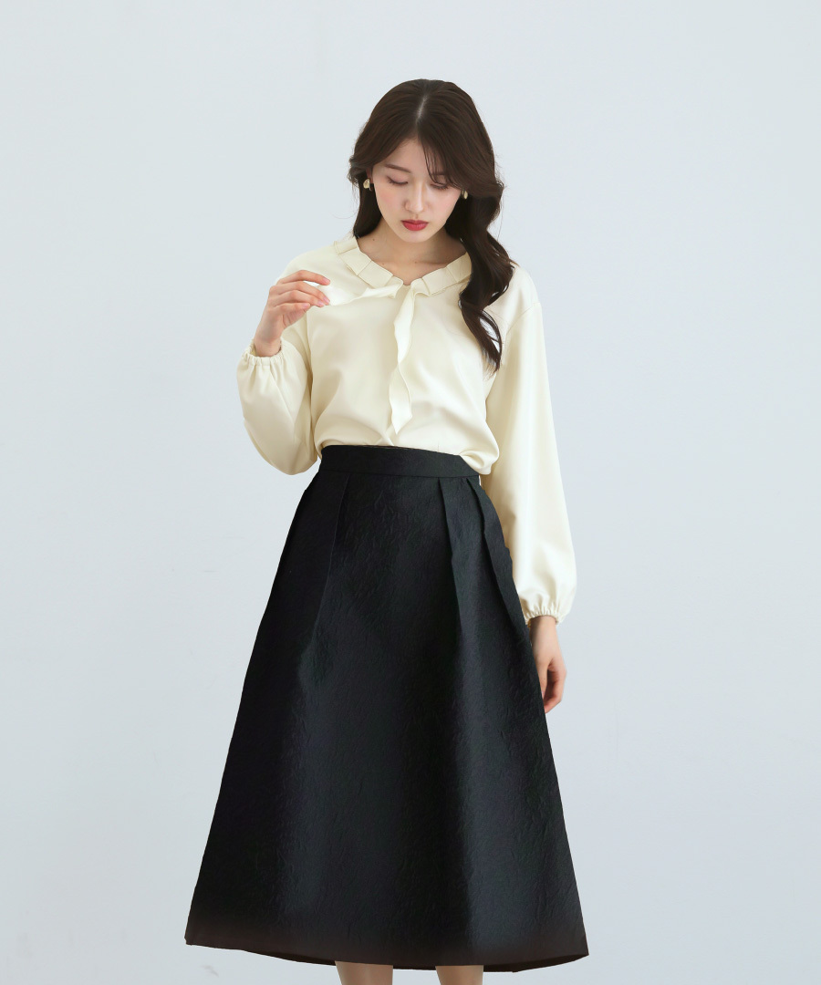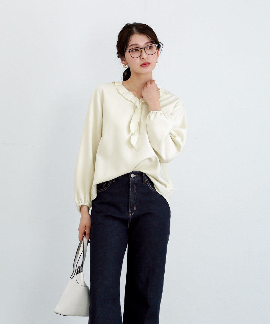 【 ディテールで魅せる 】 ダブルクロス・タックフリルボウタイブラウス