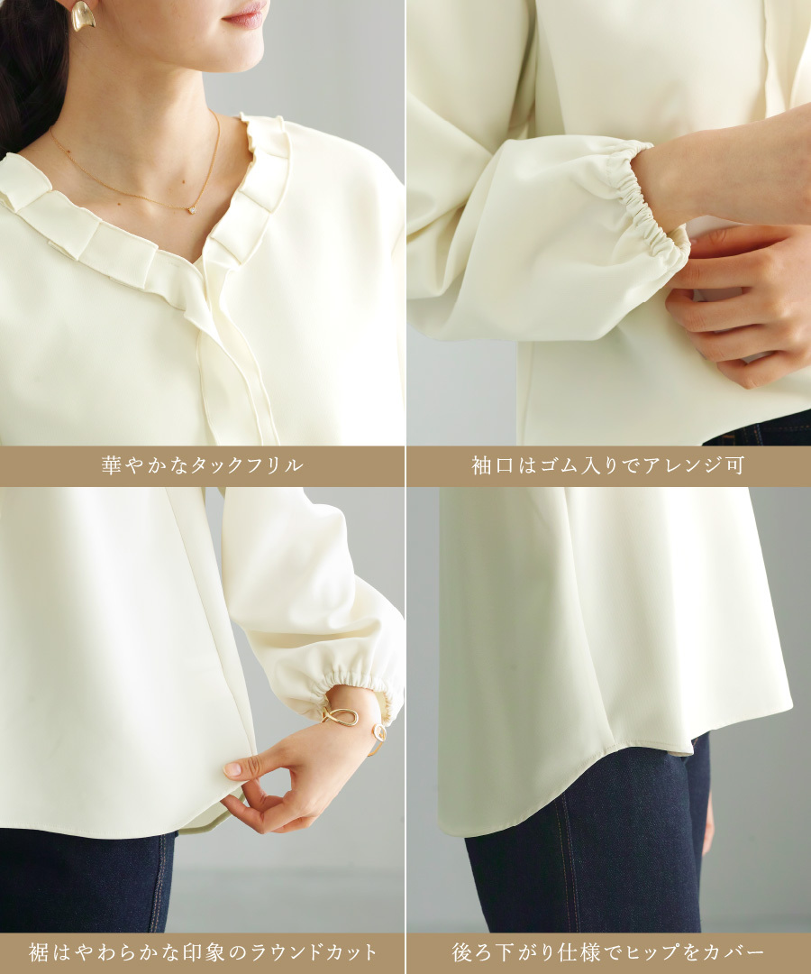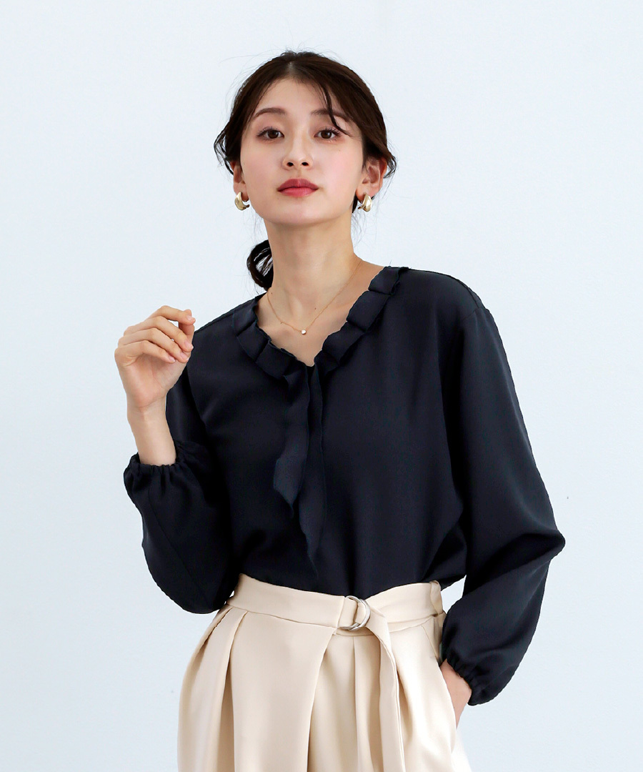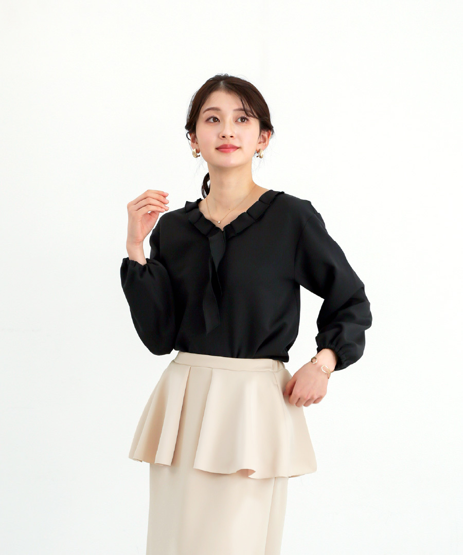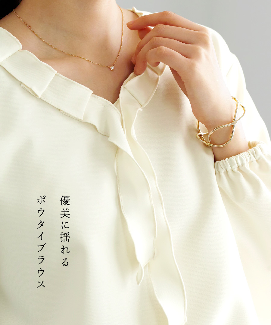 「 優美に揺れる タックフリルボウタイブラウス 」