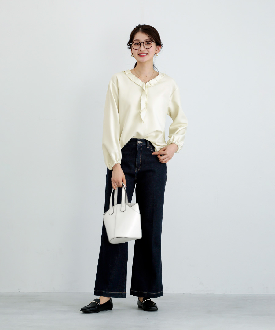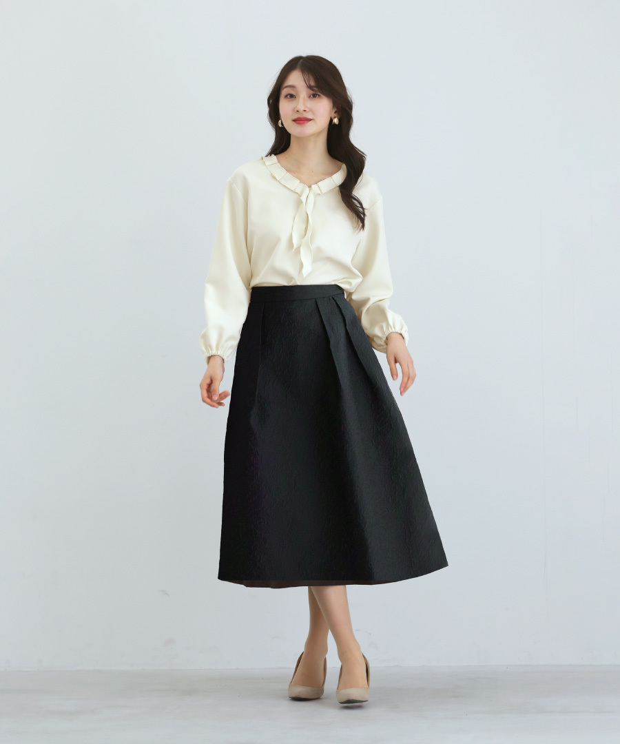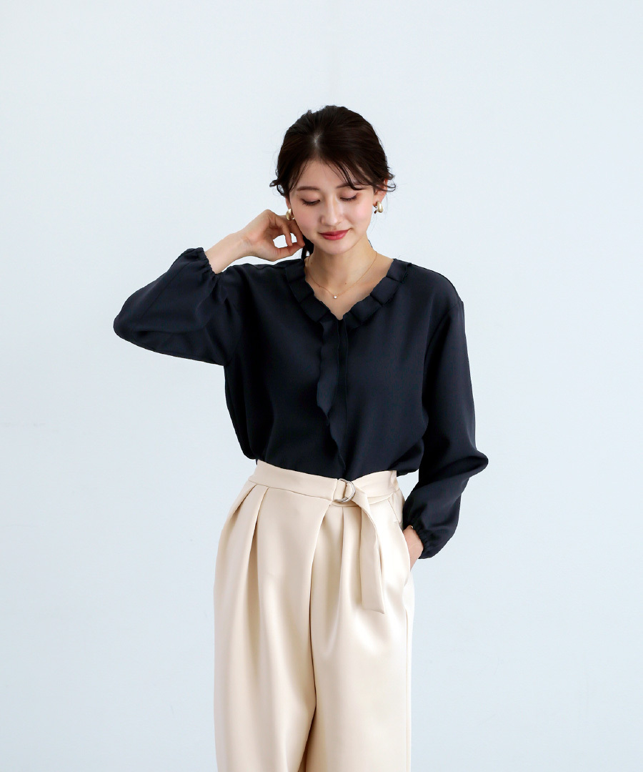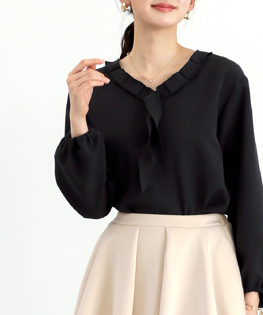 「 優美に揺れる タックフリルボウタイブラウス 」