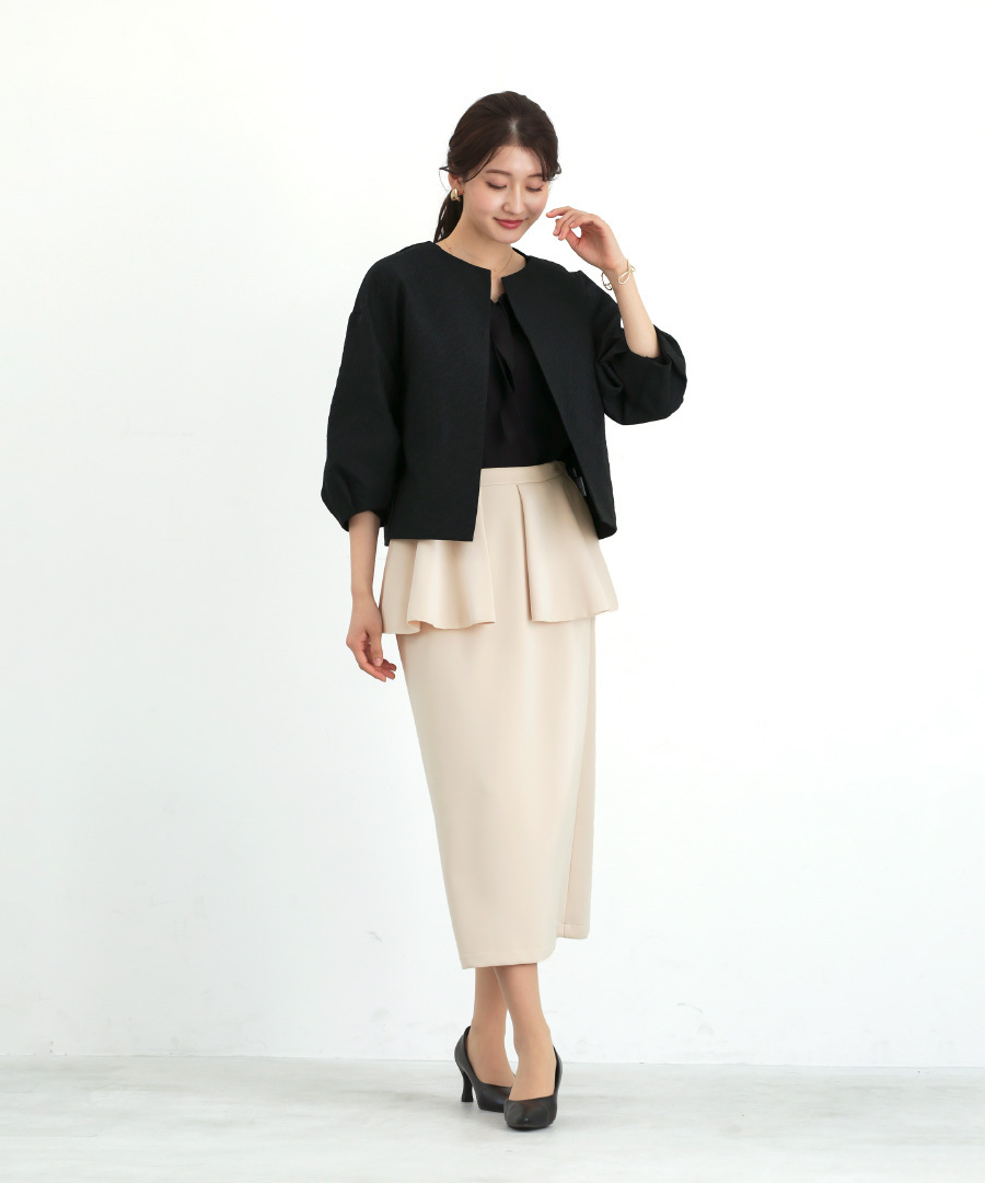 ボウタイブラウス タックフリル アシンメトリー リボンデザイン ダブルクロス ストレッチ 接触冷感 UVカット 速乾 防シワ 洗える ドロップショルダー ボリュームスリーブ フェミニン エレガント きれいめ オフィス 通勤 デイリー セレモニー レディース