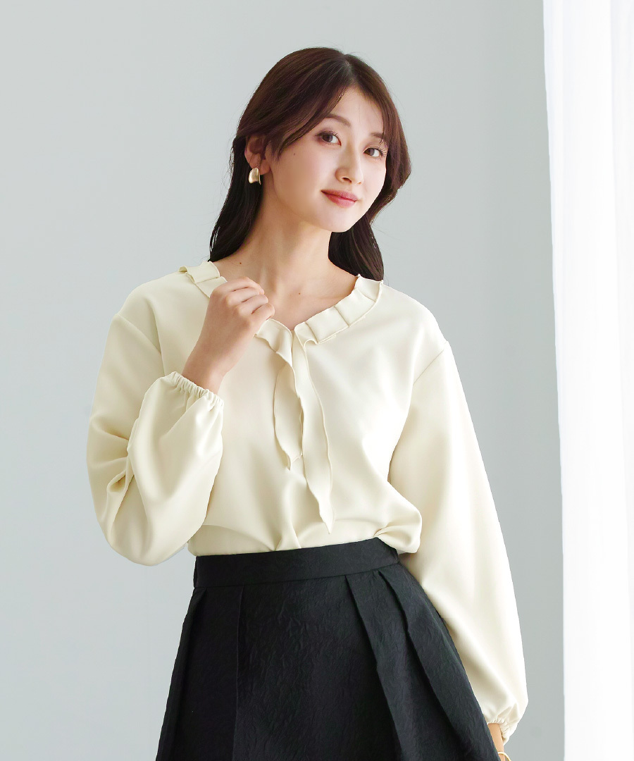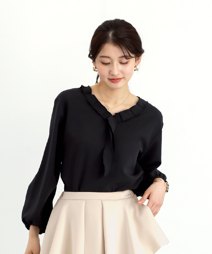 【 ディテールで魅せる 】 ダブルクロス・タックフリルボウタイブラウス(776014)