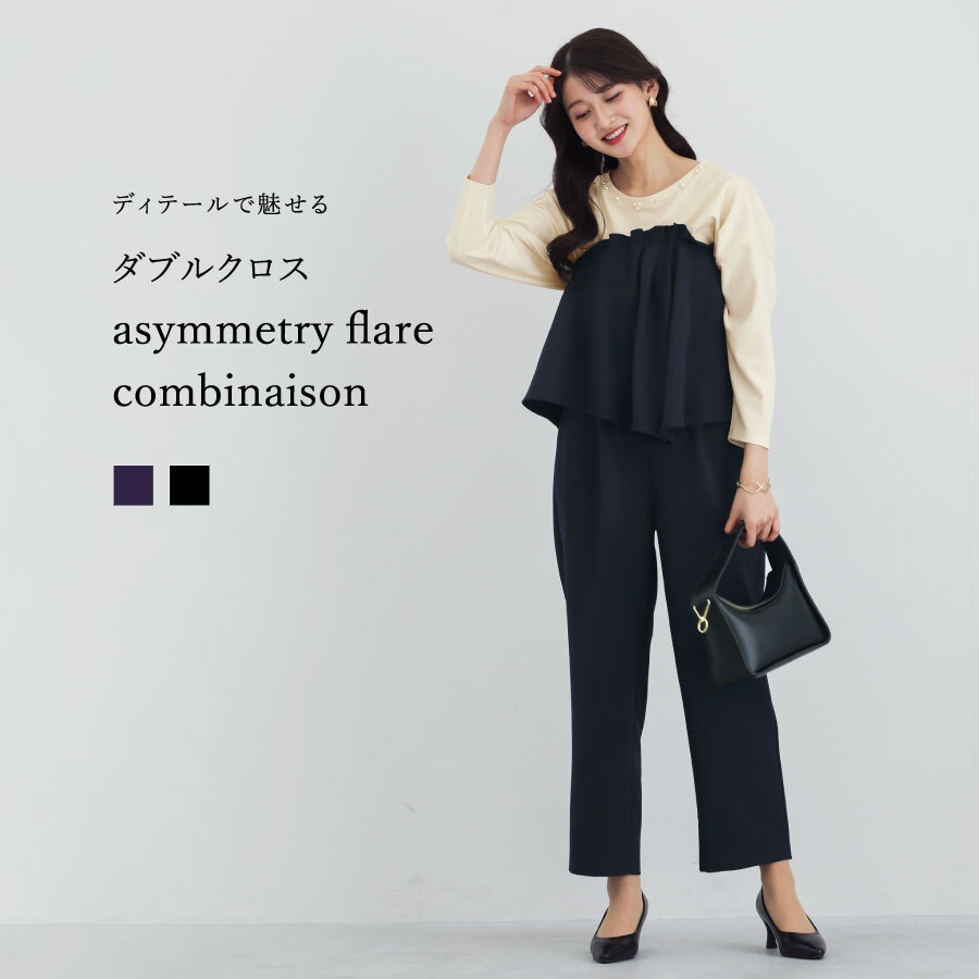 【 ディテールで魅せる 】 ダブルクロス・アシメフレアコンビネゾン