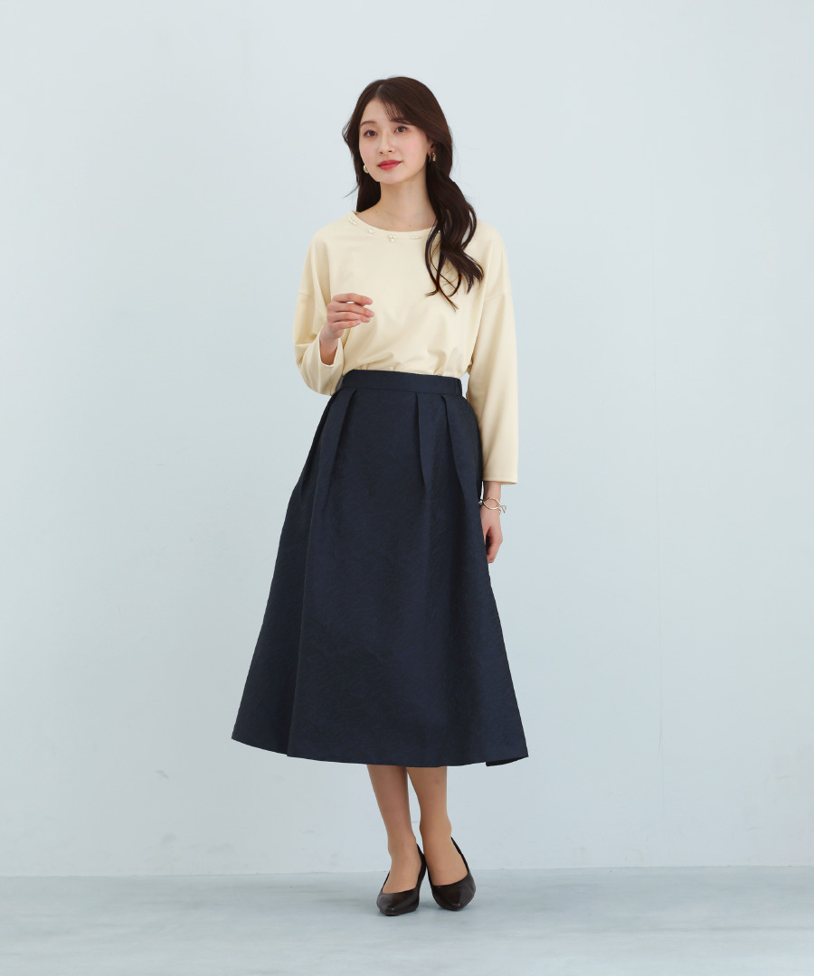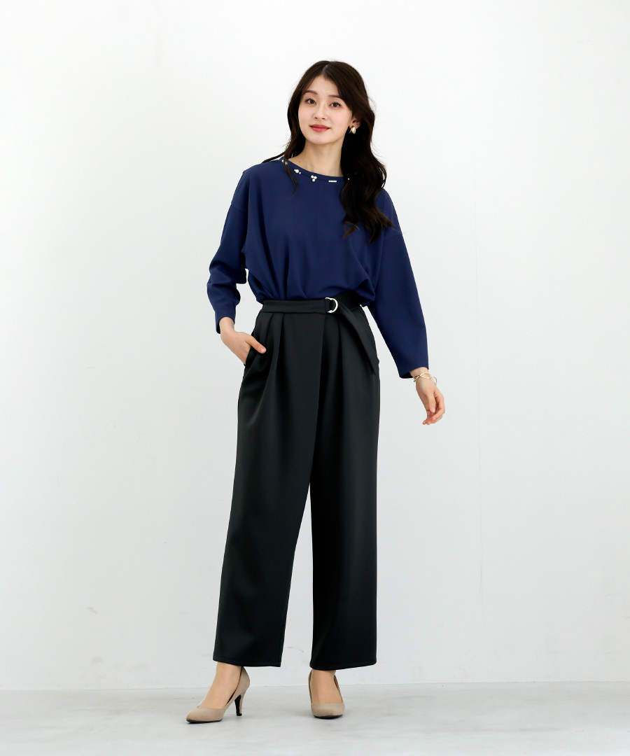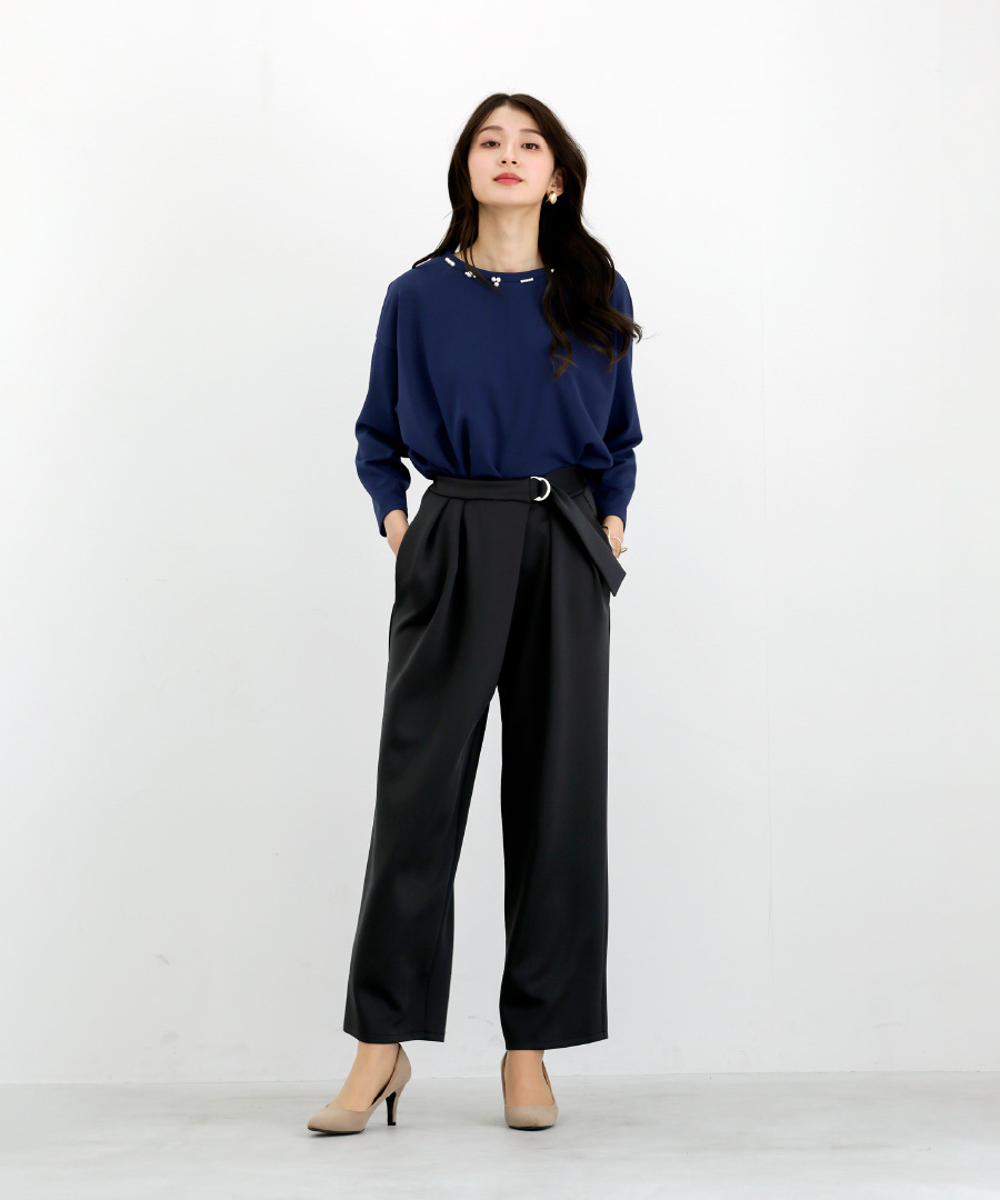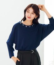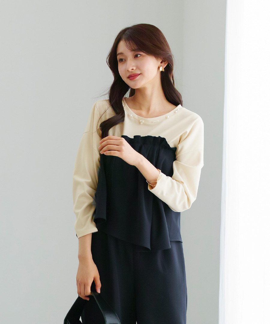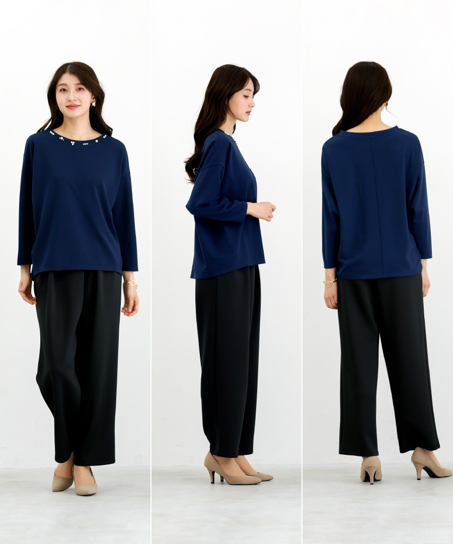 【 ディテール映え 】 ドライタッチフライス・ランダムパールライクドルマンブラウス(776018)