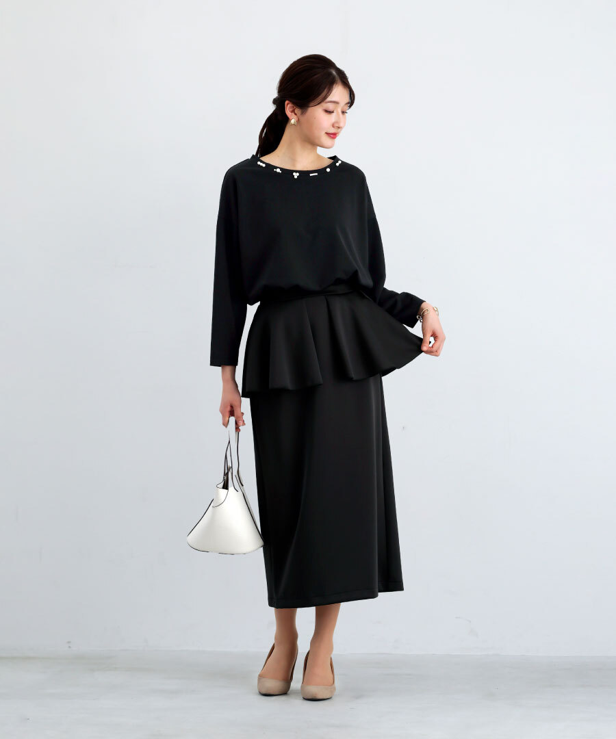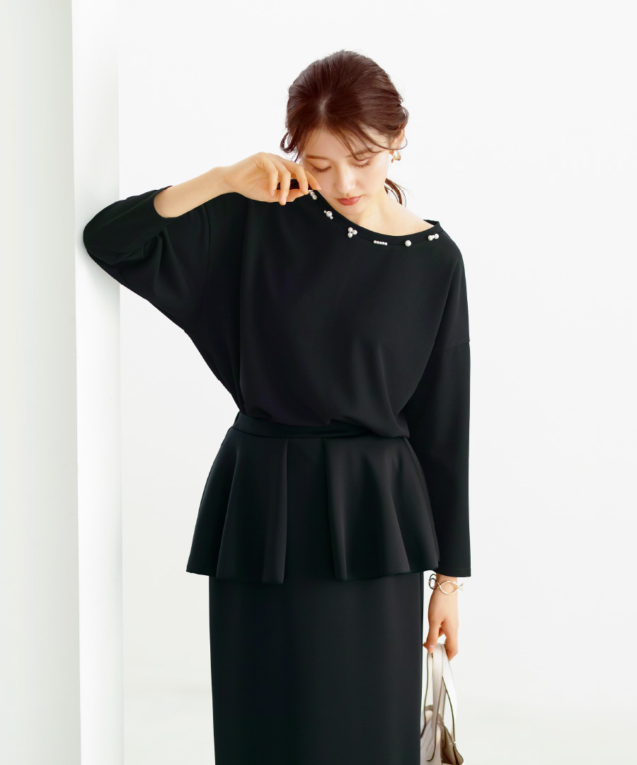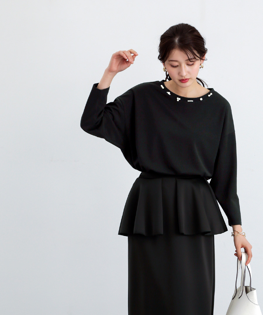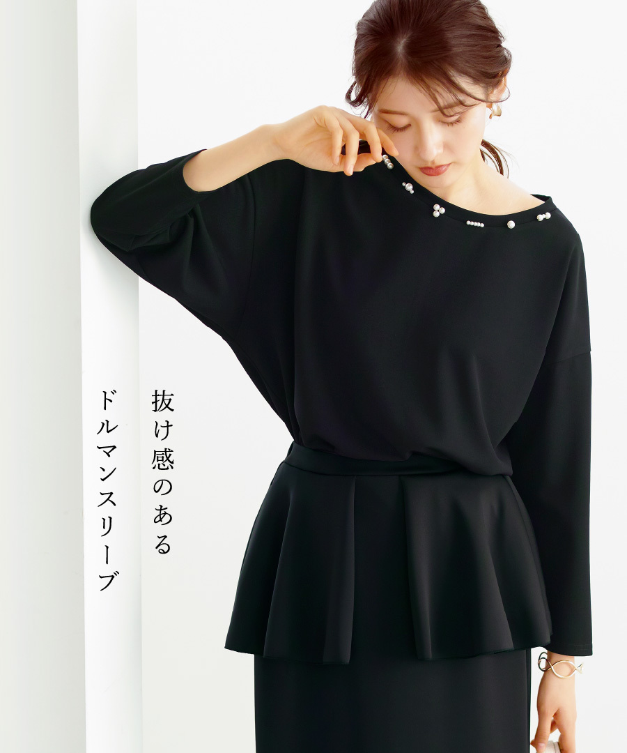 ランダムパール ブラウス ドライタッチ フライス 手洗い可 ドロップショルダー 後ろ下がり ヒップカバー カジュアル きれいめ レディース 通勤対応 オフィス セレモニー デイリー