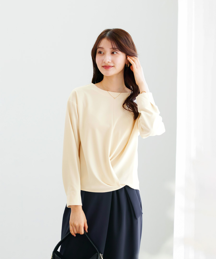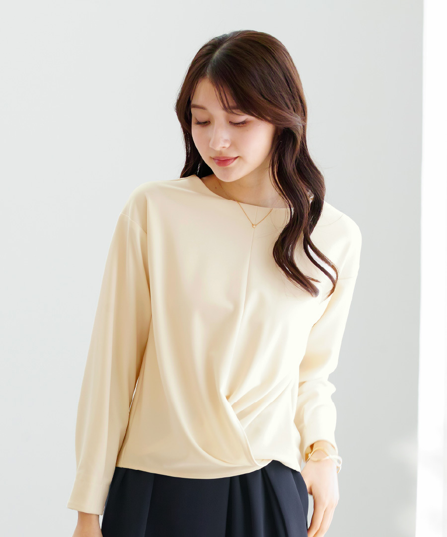 3WAYカシュクール ブラウス ドライタッチ フライス 手洗い可 ドレープ ネックスリット カジュアル きれいめ レディース 通勤対応 オフィス セレモニー デイリー