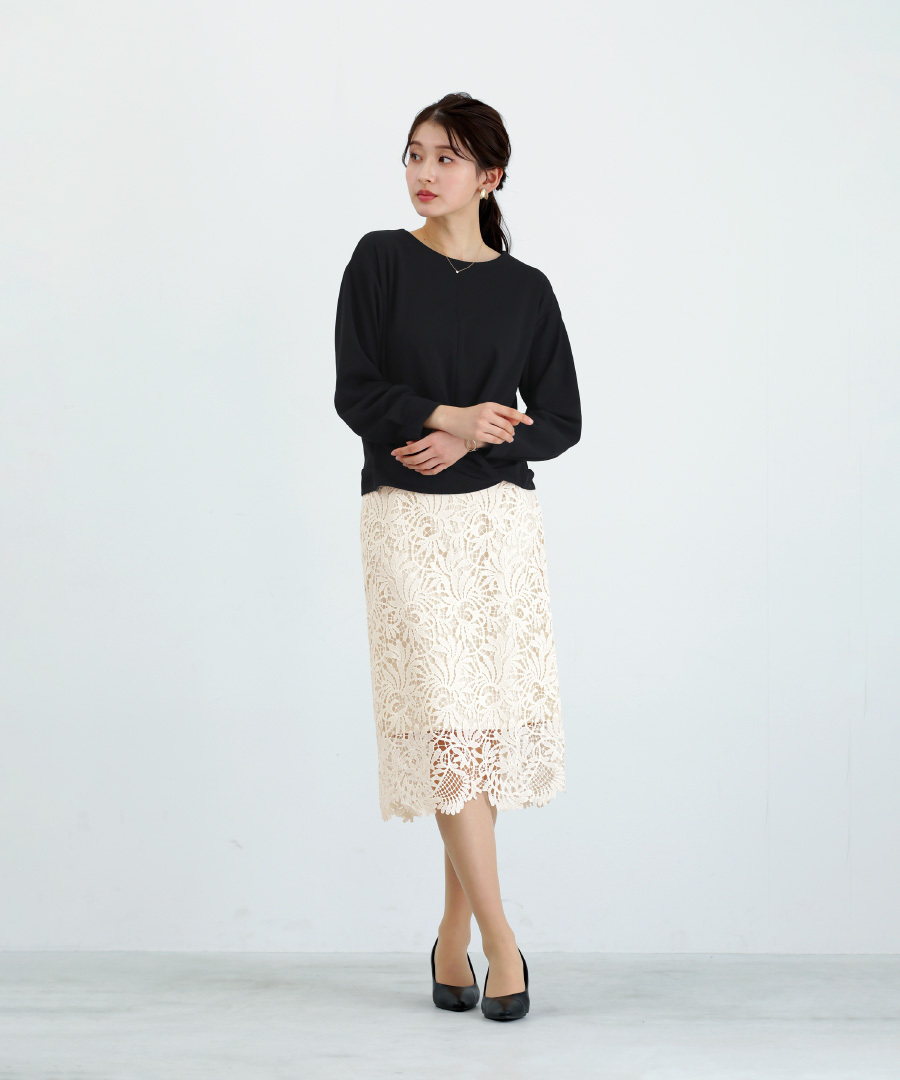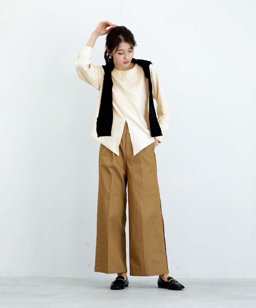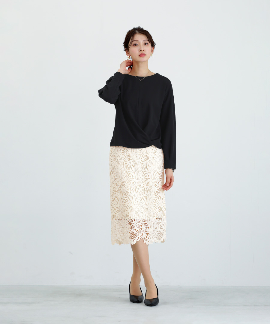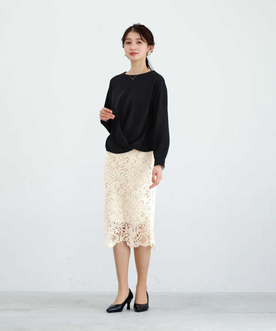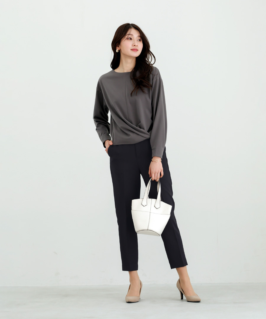 パンツにもスカートにも合わせやすい万能デザインブラウスです。