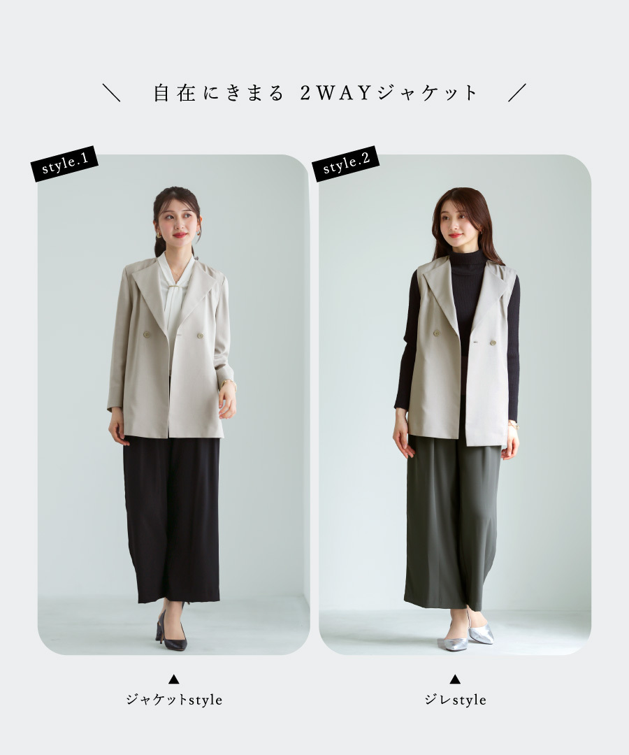 2WAY 着まわし力 テーラードジャケット ジレ テーラードジレ きれいめ レディース 通勤対応 オフィス セレモニー デイリー