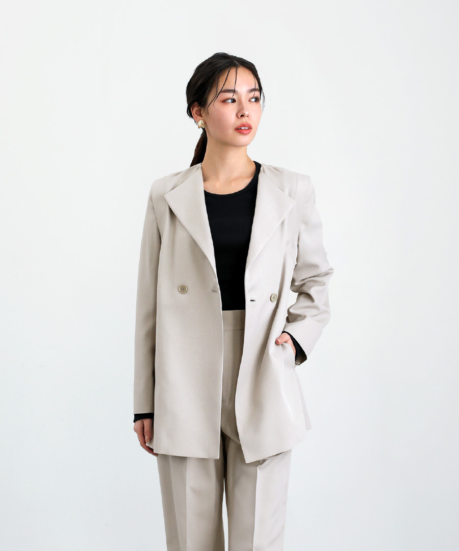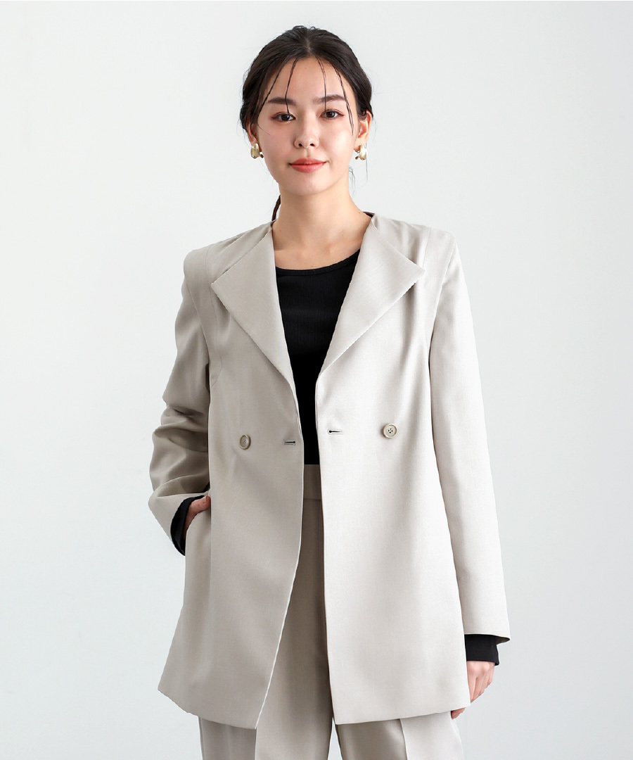 【 コーデ自在 】 ライトモククロス・2WAYダブルジャケット