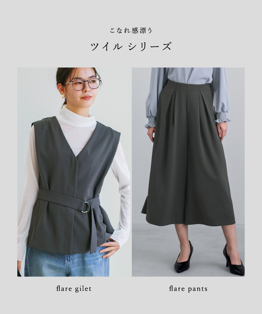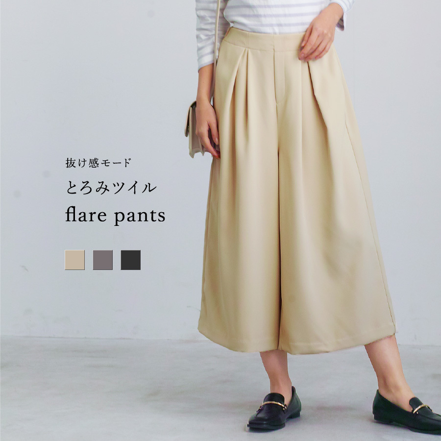 【 抜け感モード 】とろみツイル・ミディフレアパンツ