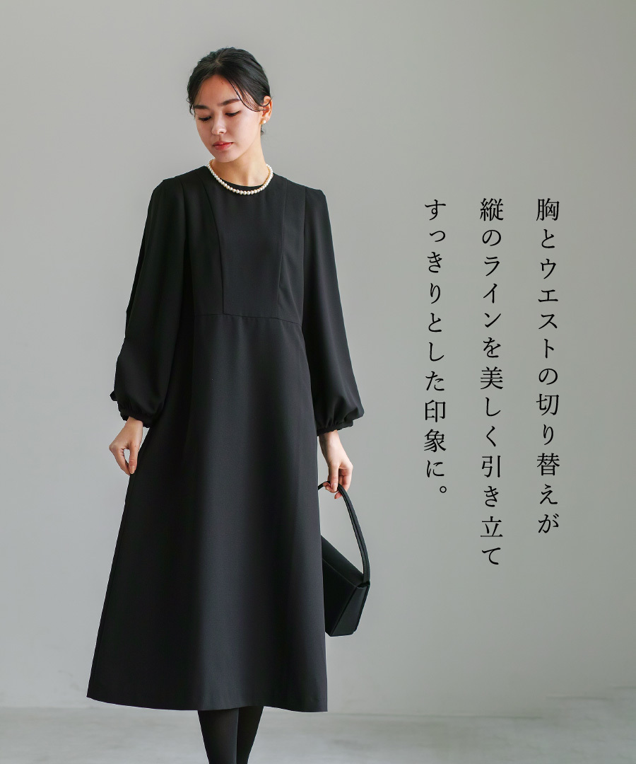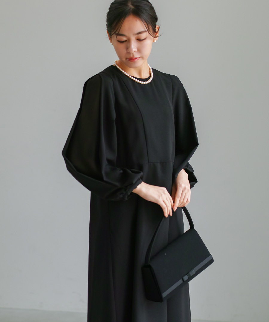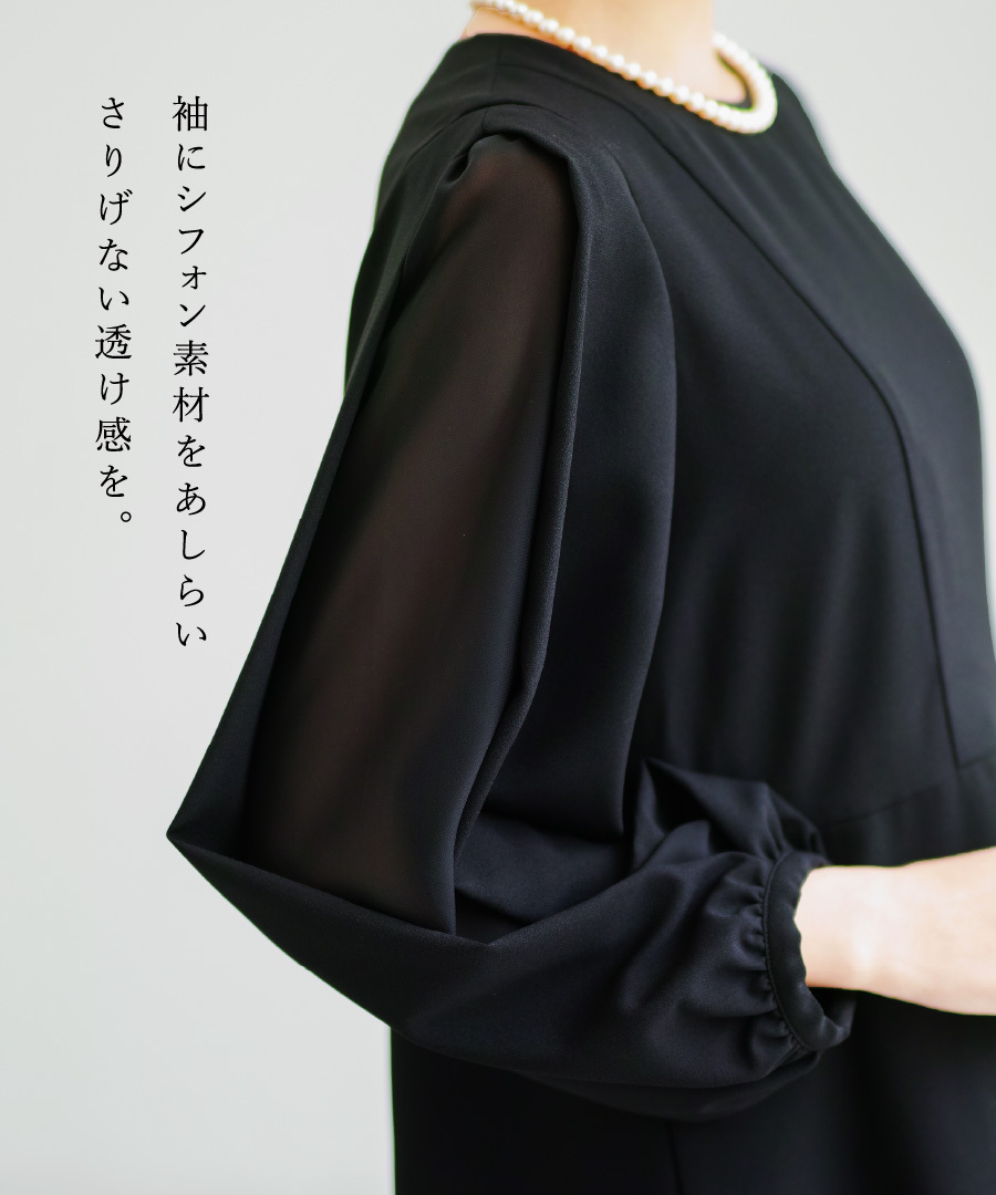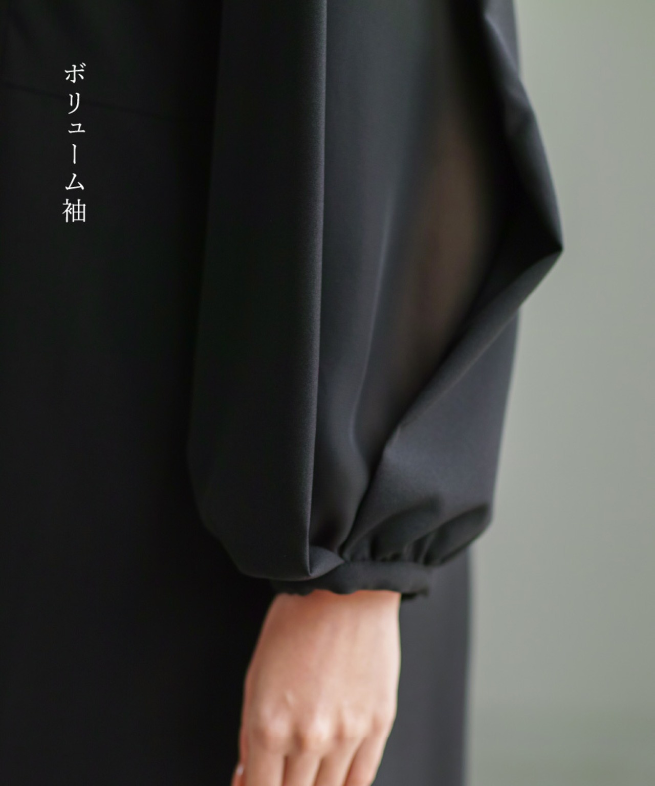 【最強配送】喪服・礼服喪服・礼服【洗えるフォーマル】ボリュームシフォン袖フレアワンピース