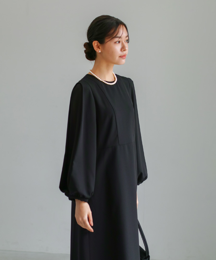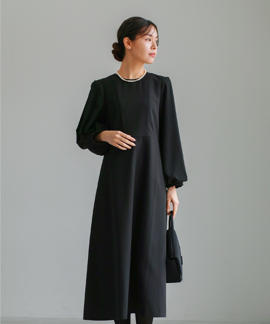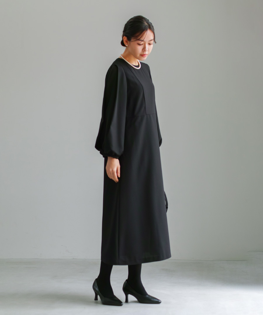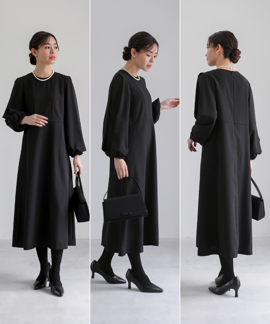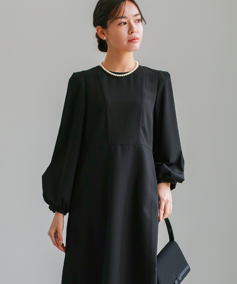【最強配送】喪服・礼服喪服・礼服【洗えるフォーマル】ボリュームシフォン袖フレアワンピース