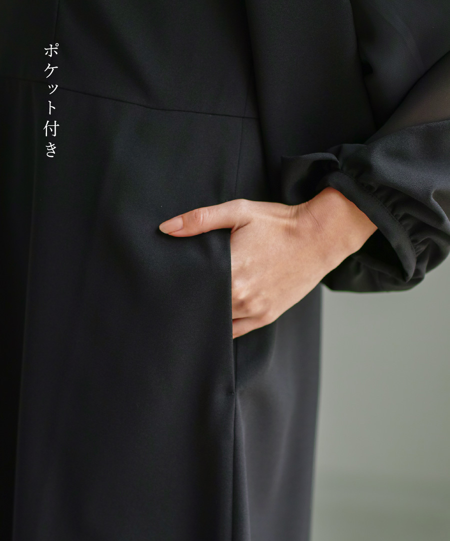 【最強配送】喪服・礼服【洗えるフォーマル】ボリュームシフォン袖フレアワンピース(776055)