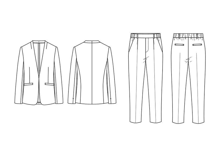 [ カラーレスジャケット+テーパードパンツ ]