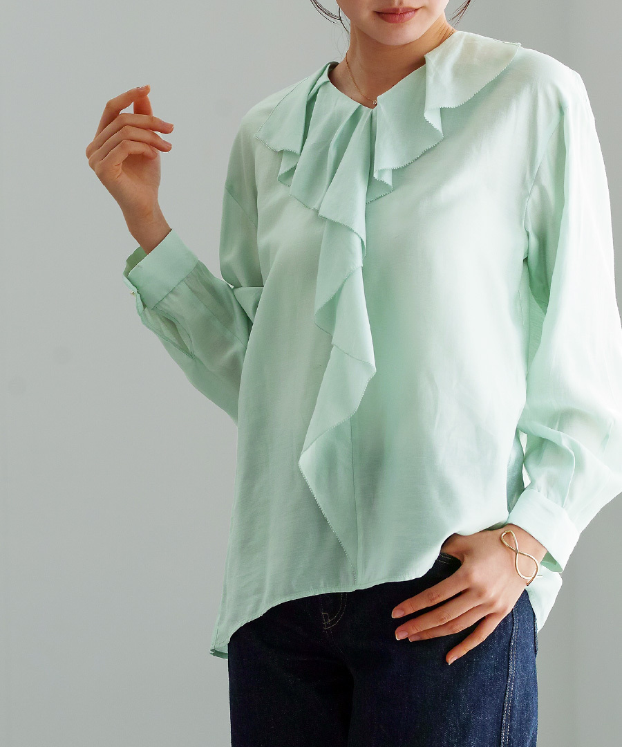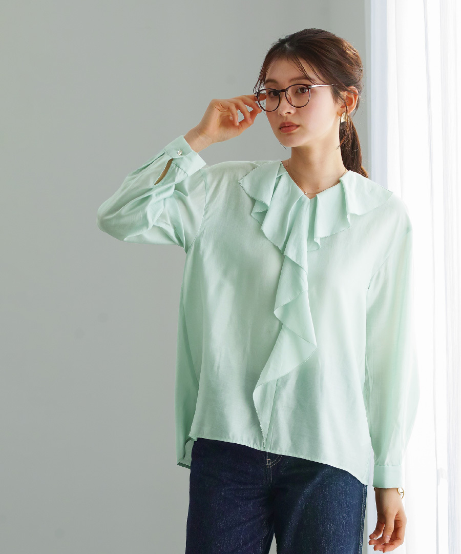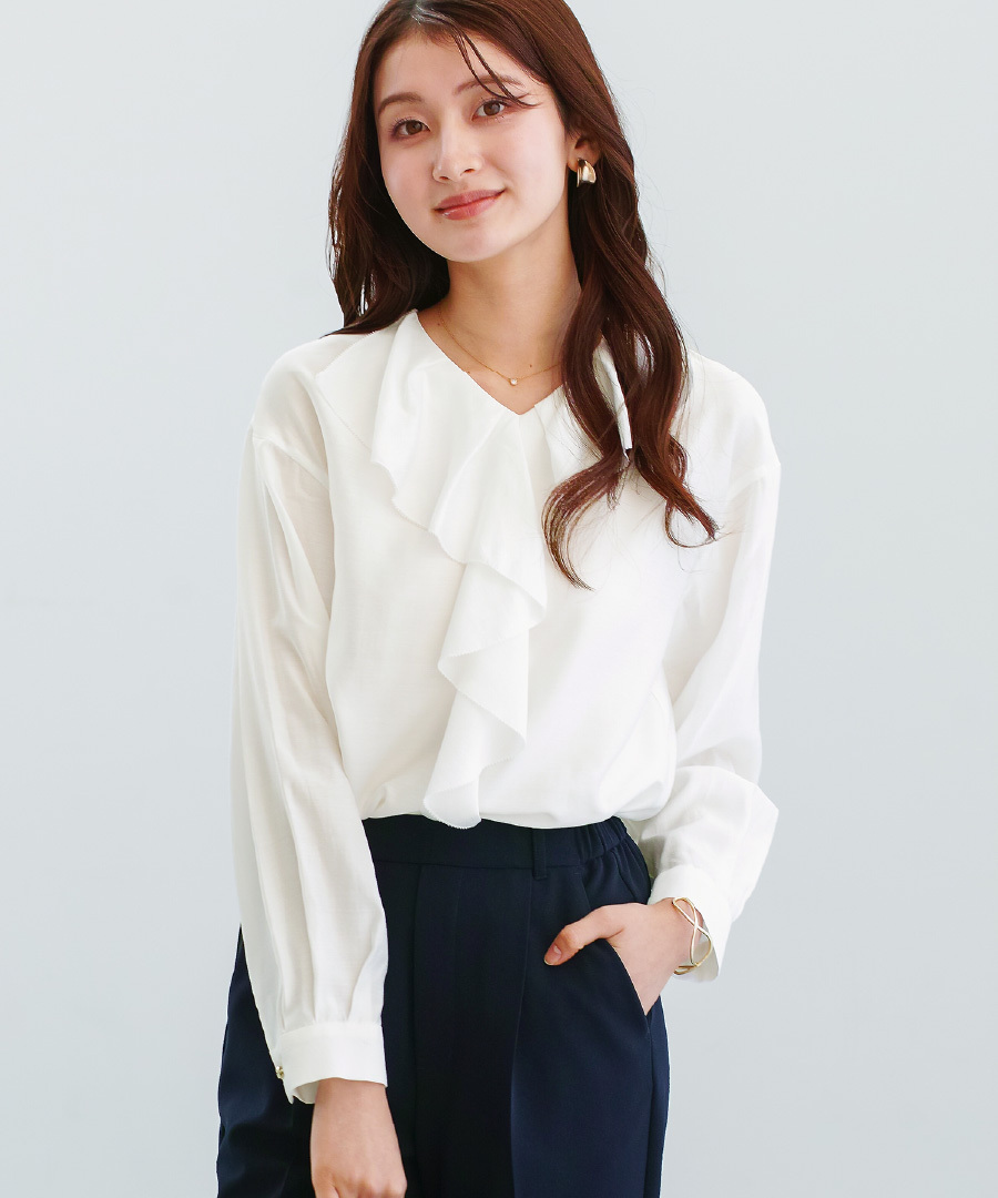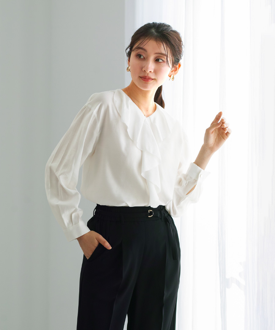 軽やかな着心地のラッフルフリルブラウス。