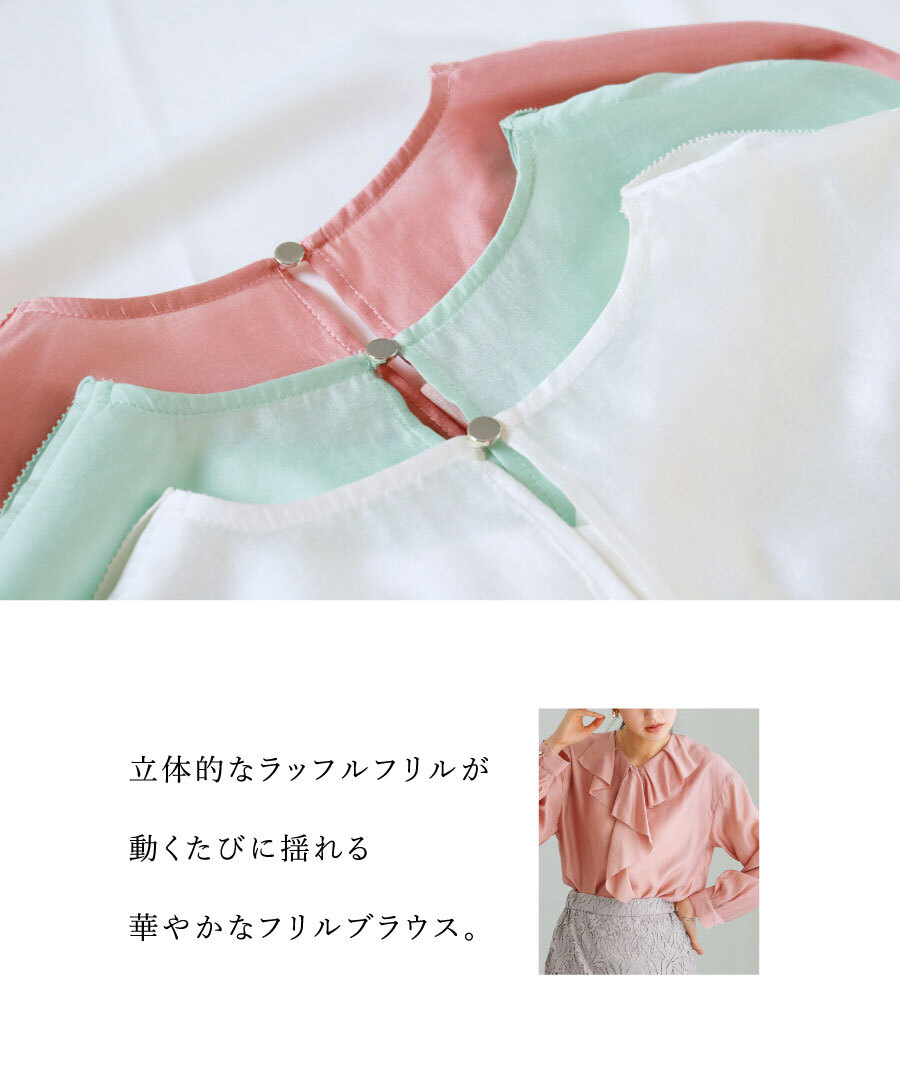 ブラウス フリルブラウス ラッフルフリル シルキーローン オフィスコーデ きれいめ 上品 フェミニン 長袖ブラウス 通勤服