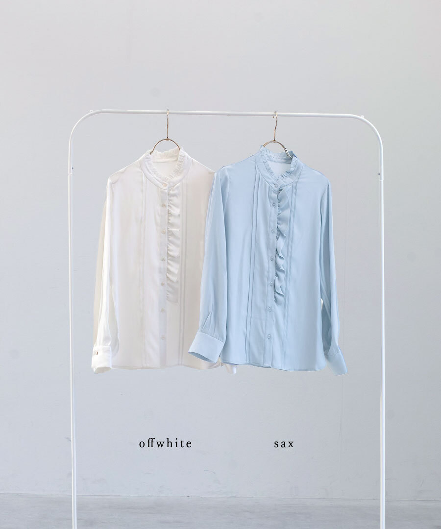 フェミニンなフリル仕立てのスタンドネック。