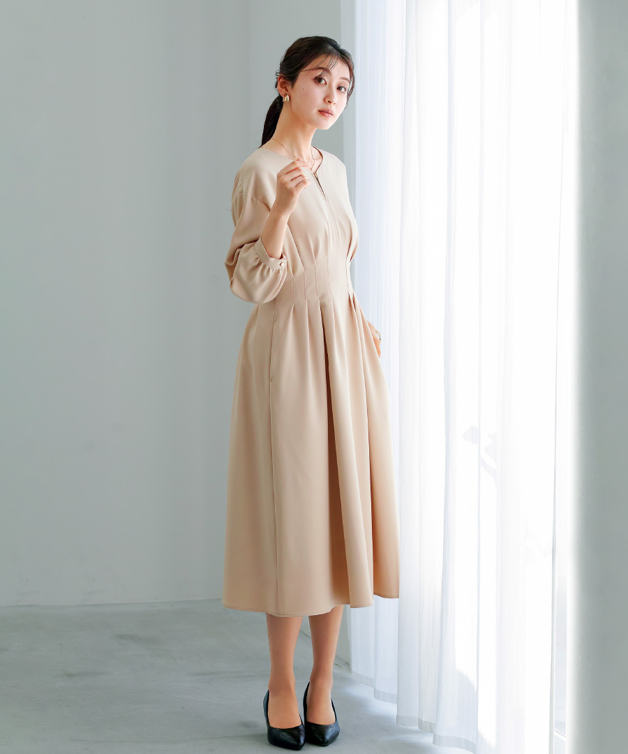 【多機能すぎるワンピース】ダブルピケクロス・タックデザインフレアワンピース(776067)