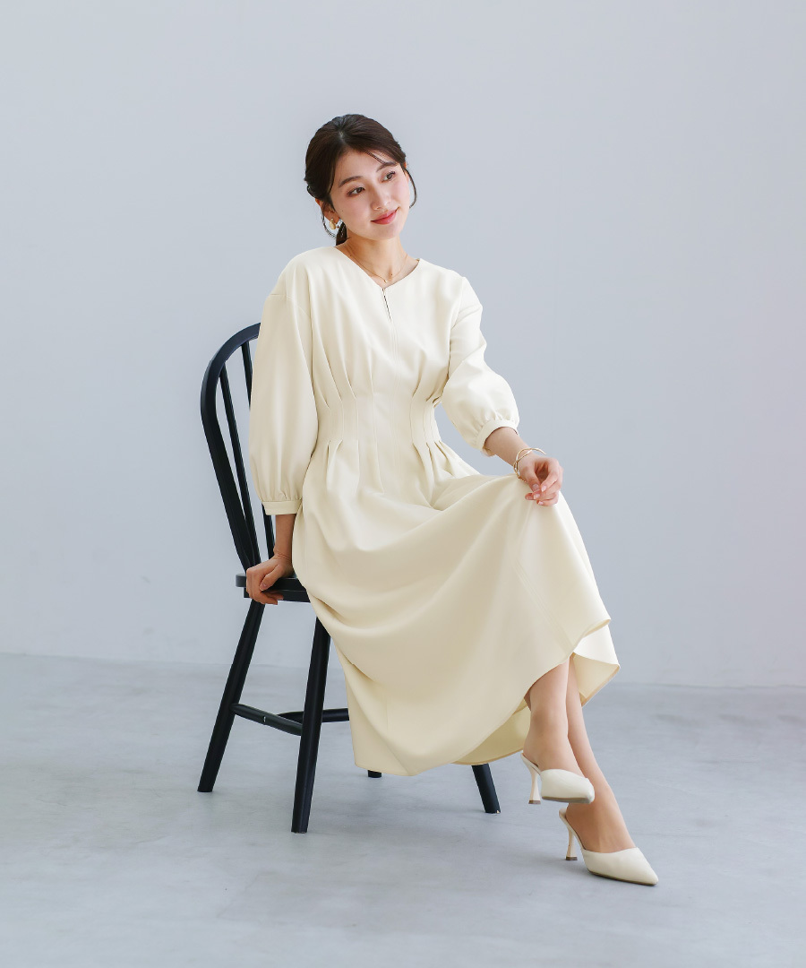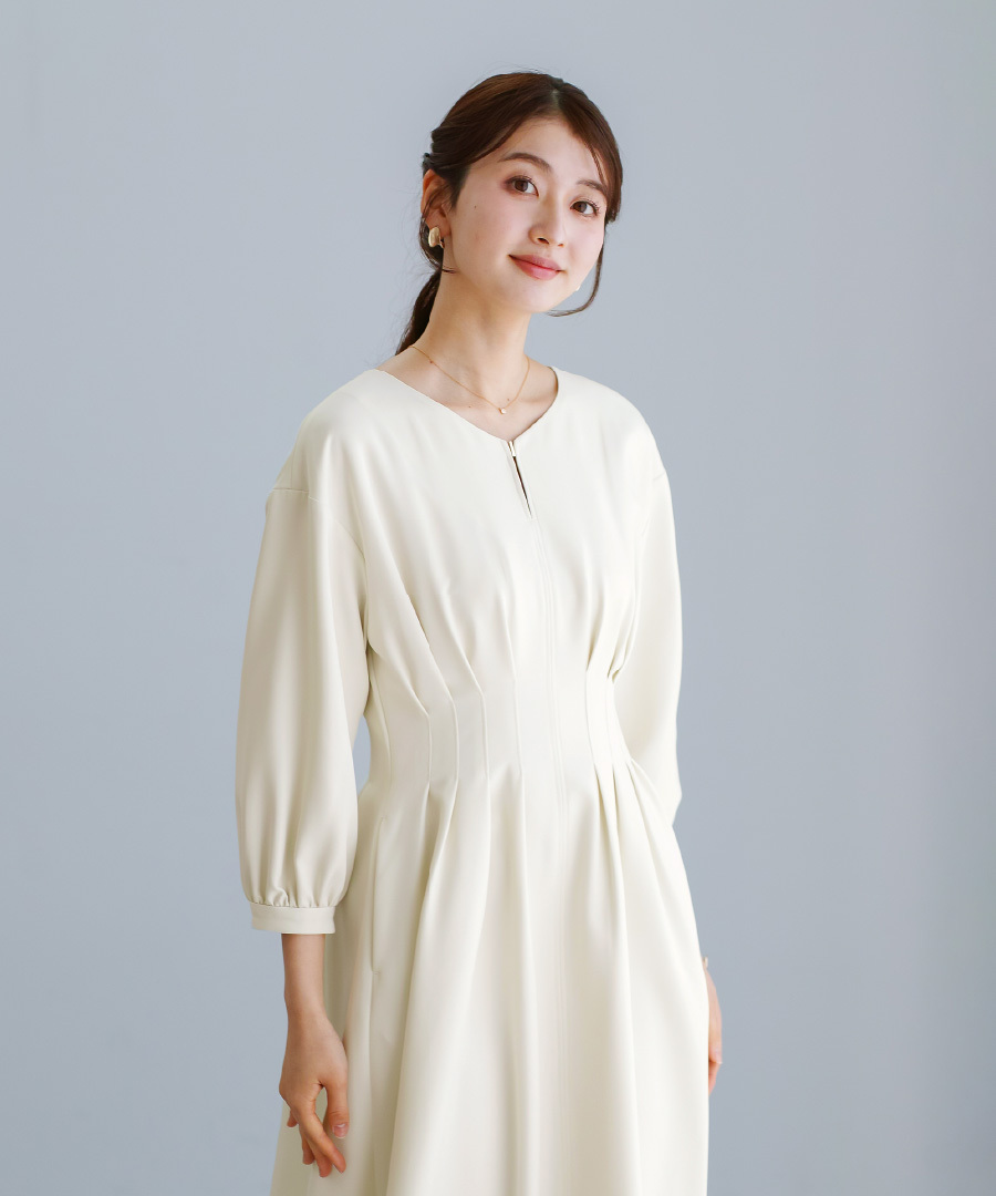 【多機能すぎるワンピース】ダブルピケクロス・タックデザインフレアワンピース