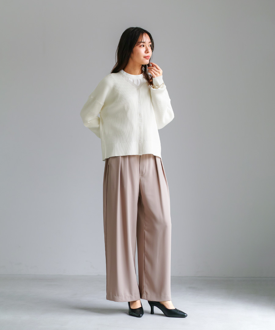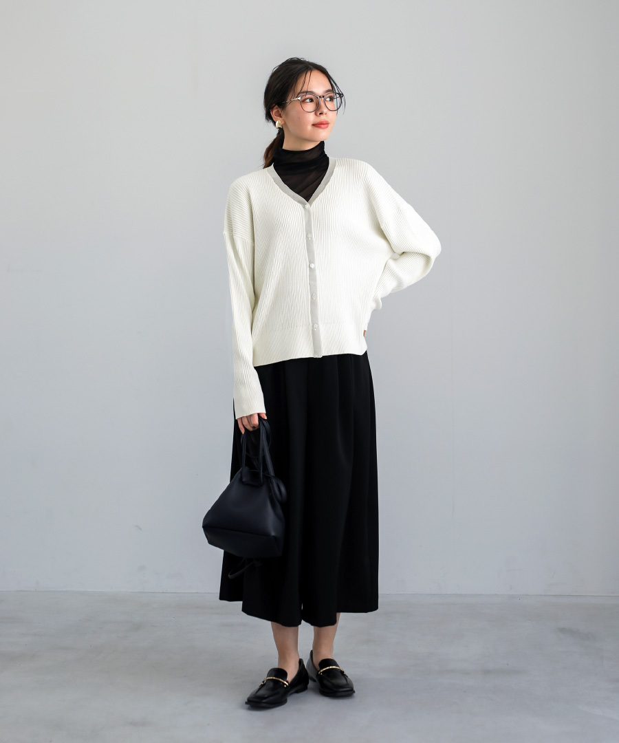 パンツにもスカートにも合わせやすく、