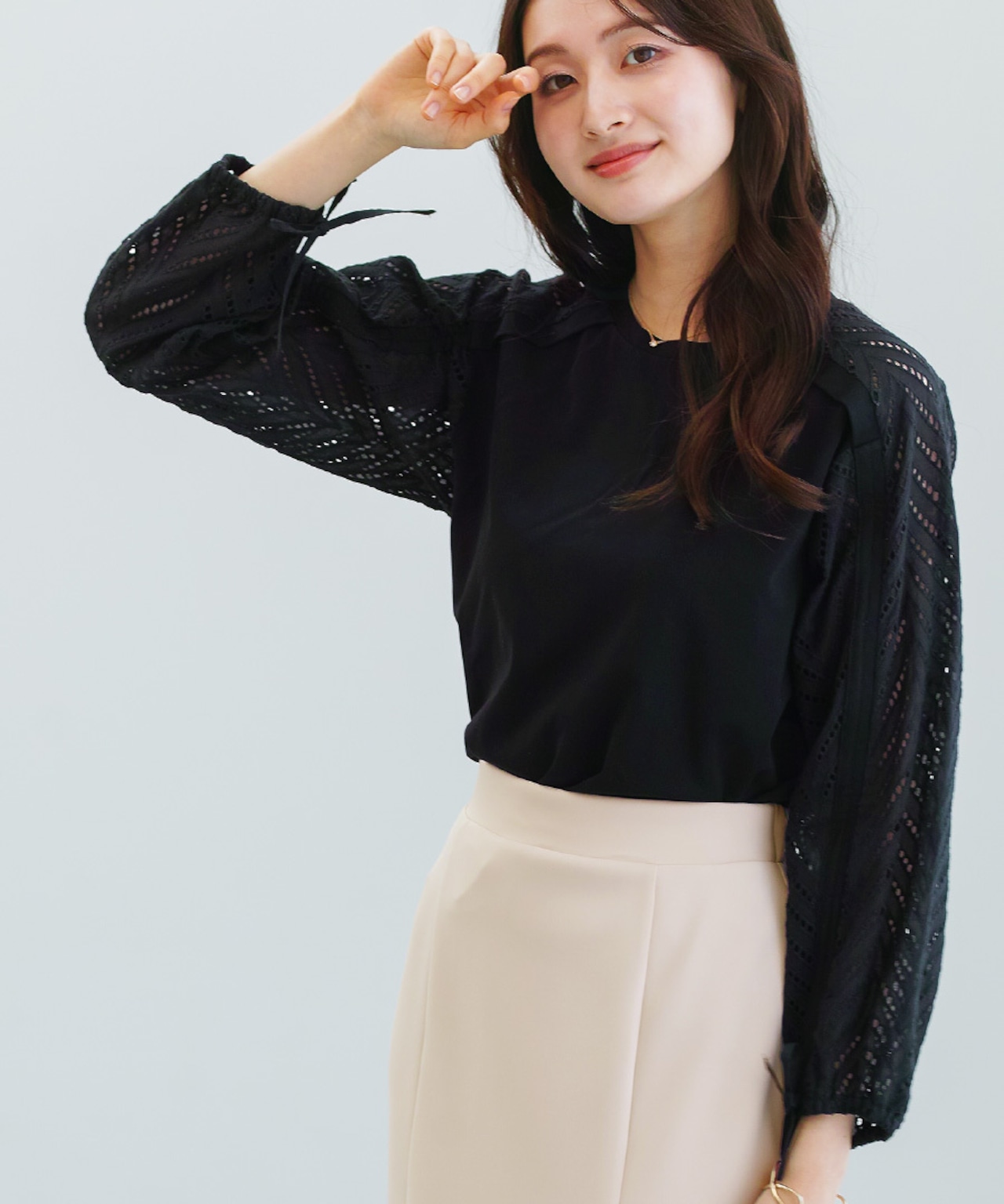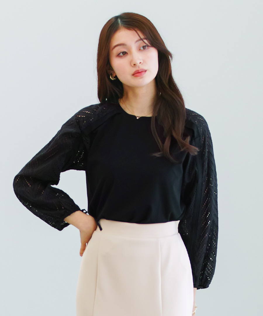 「 甘さを抑えた レース袖プルオーバー 」