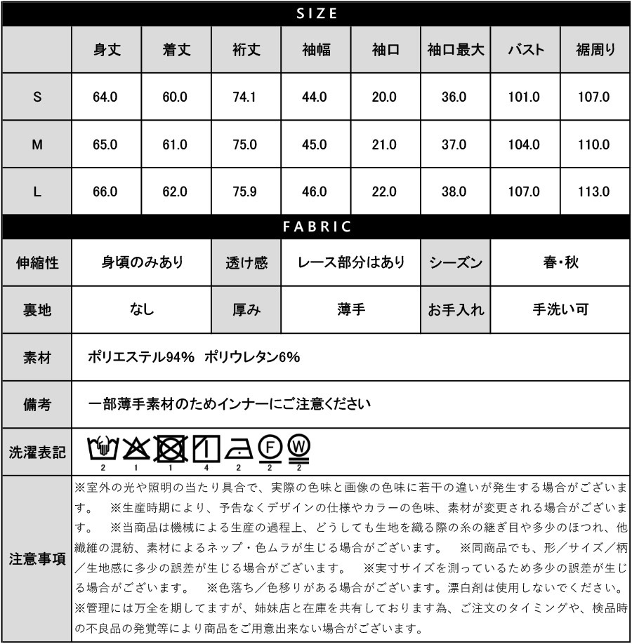 伸縮性:身頃のみあり
