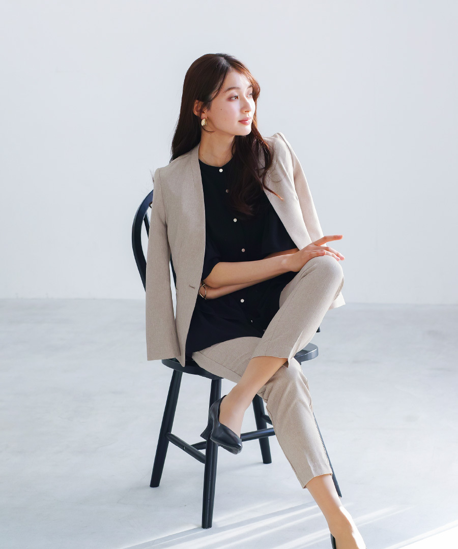 動きのあるシルエットと視線を引き上げる立体感を演出します。