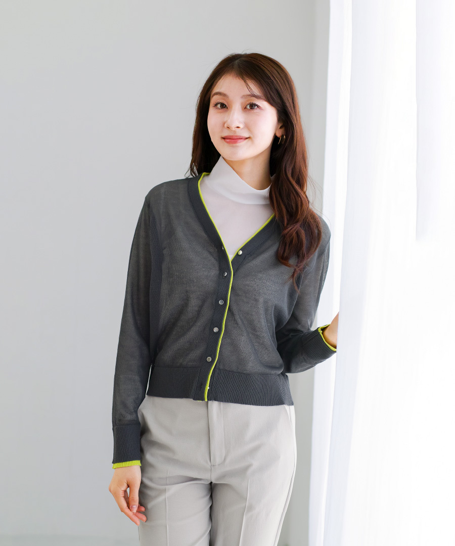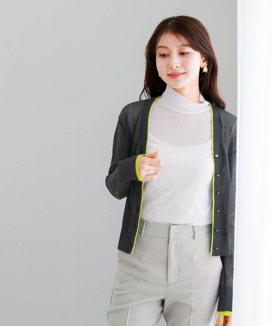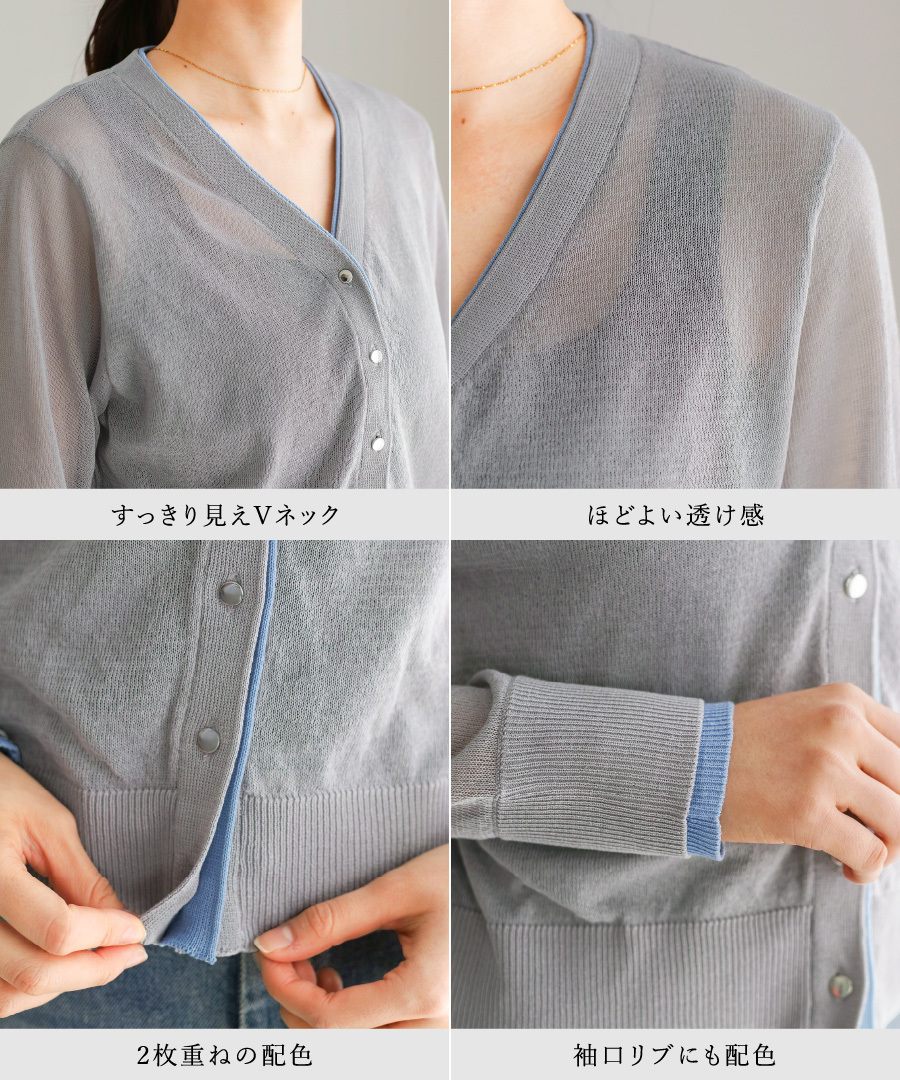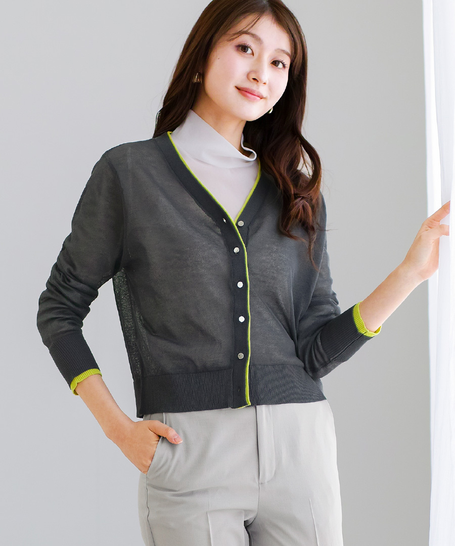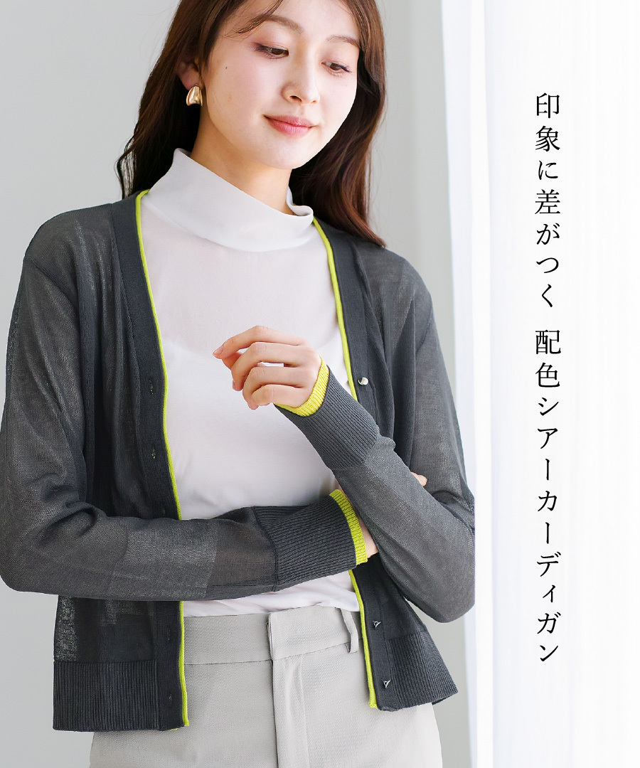 「 印象に差がつく 配色シアーカーディガン 」