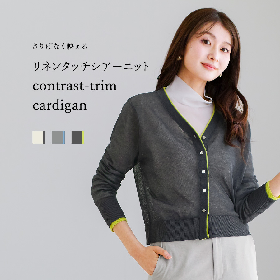 シアーカーディガン 配色カーディガン サマーニット リネンタッチ 透け感ニット 冷房対策 羽織り オフィスカジュアル きれいめカーディガン 夏トップス