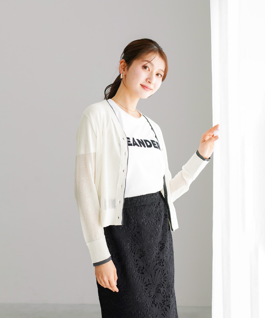 軽やかなシアーニットカーディガン。