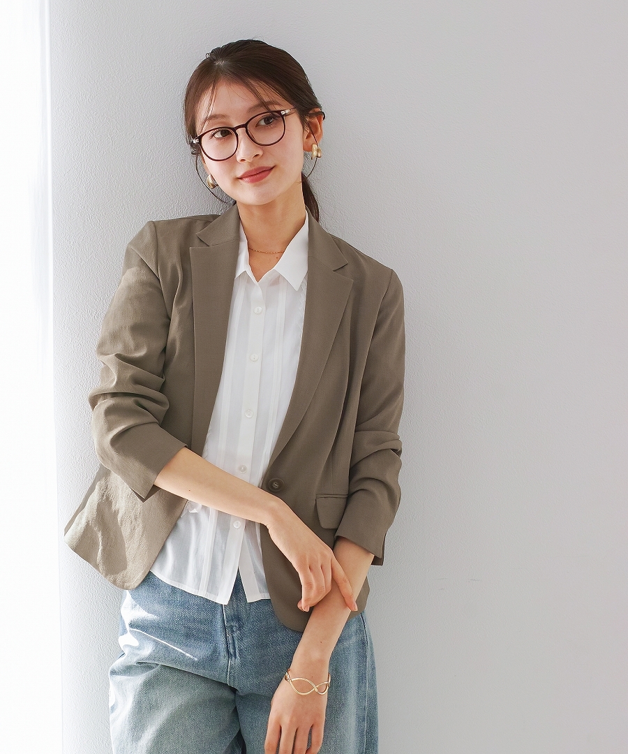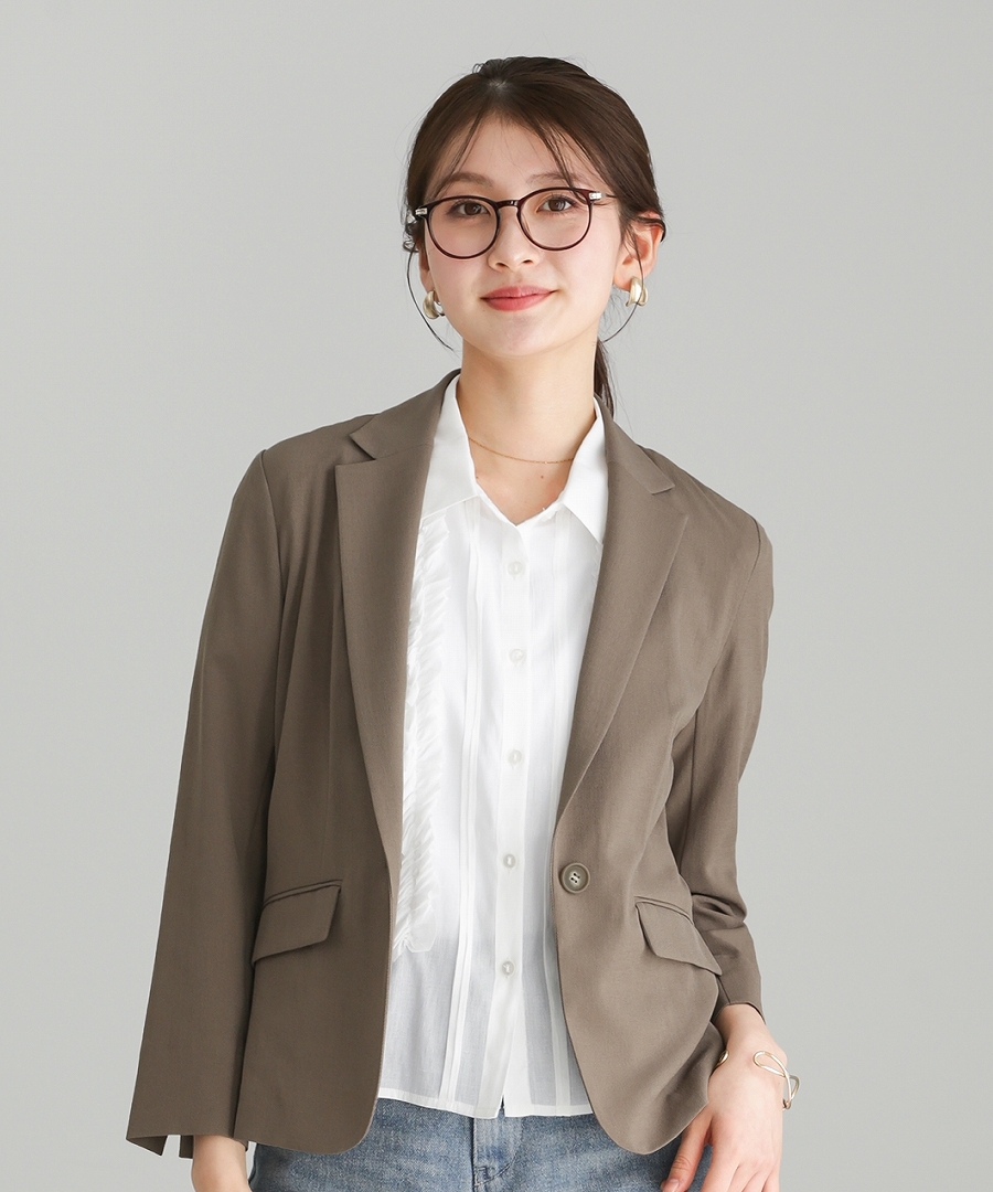 リネンライクツイル素材を使用したテーラードジャケット。
