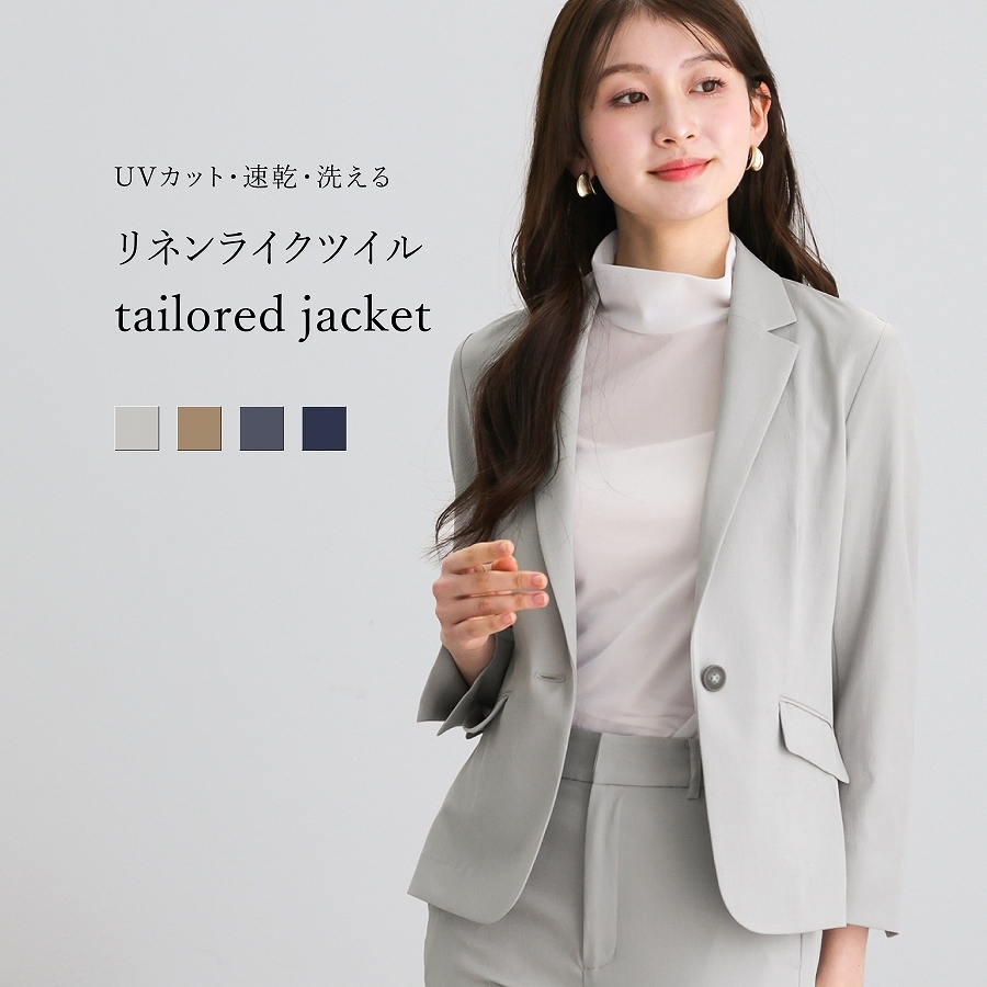 【 UVカット・速乾・洗える 】 リネンライクツイル・テーラードジャケット