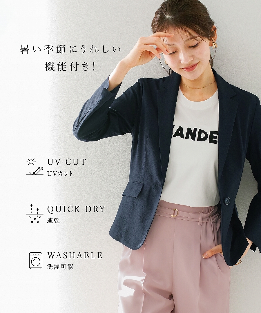 テーラードジャケット レディースジャケット 夏ジャケット セットアップ対応 UVカット 速乾 ウォッシャブル オフィスカジュアル 通勤コーデ きれいめジャケット